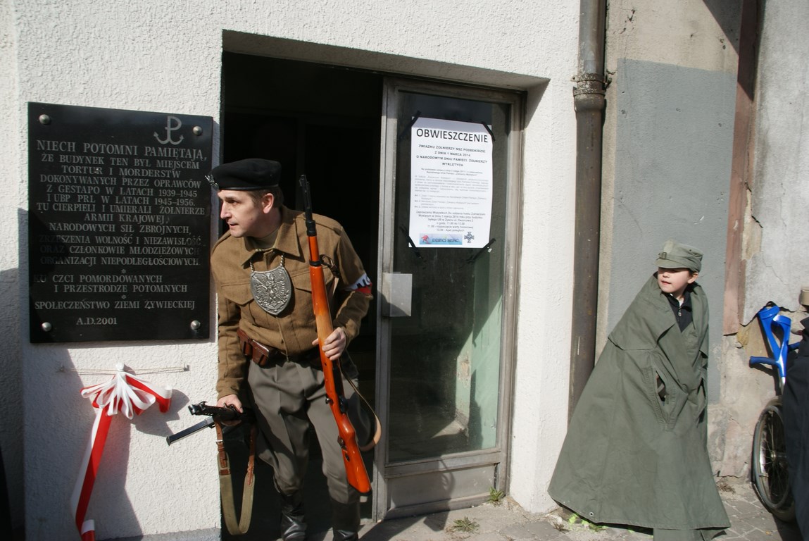 Dzień Żołnierzy Niezłomnych, obchodzony był w Żywcu przy budynku w którym ubecy torturowali i więzili Polskich Patriotów. Ul. Dworcowa 2 (później biblioteka publiczna, obecnie – pustostan).