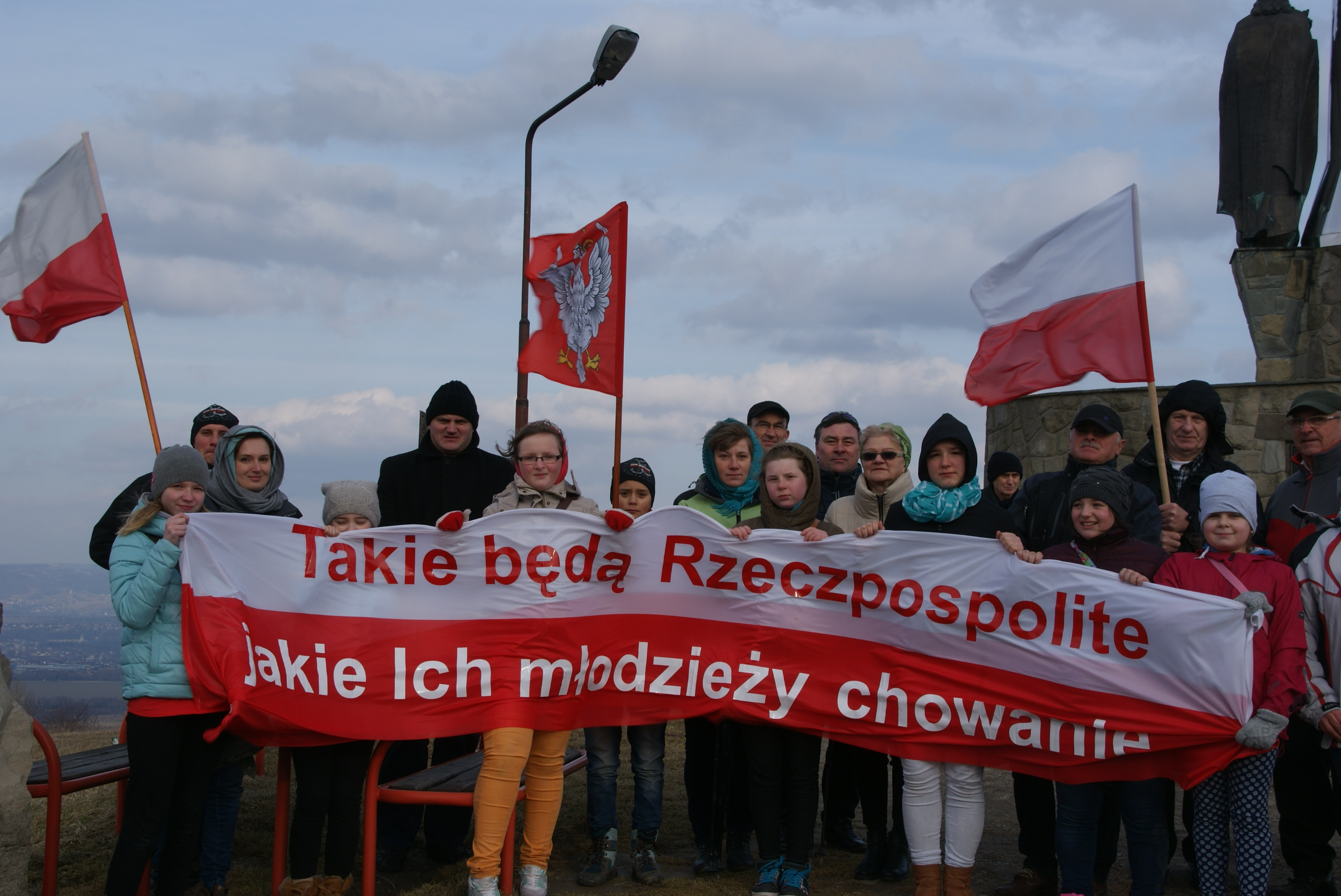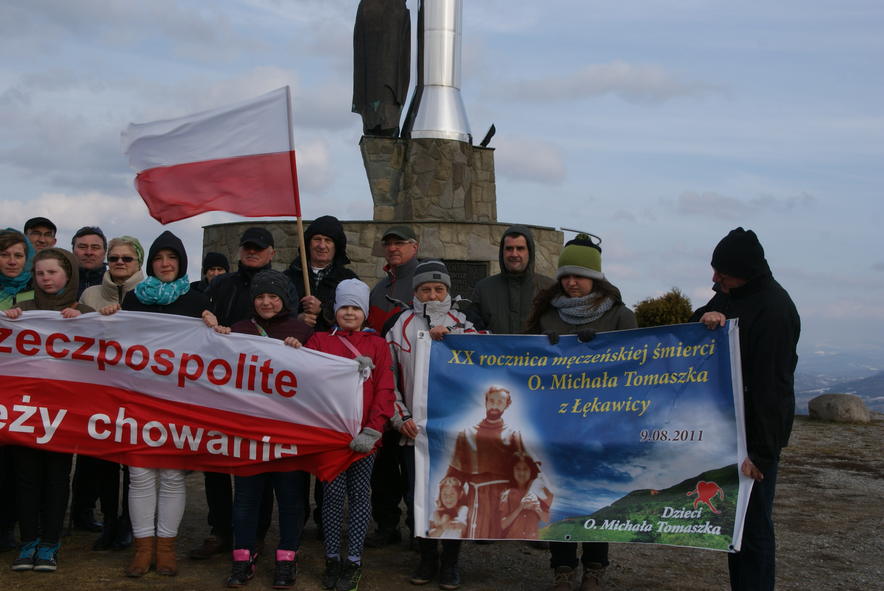 1. na Matysce przy Kurhanie Pamięci Narodowej tradycyjnie o 15;00 zebrała się grupa najodważniejszych Górali, nie straszny im był smagający twarze wiatr, droga na szczyt zwieńczony Krzyżem Jubileuszowym, czy pytanie ilu nas tam będzie? Dotarliśmy, by powiedzieć tym tysiącom niewinnie pomordowanych Żołnierzy, że PAMIĘTAMY i że ich ofiara nie była daremna. W intencji Ojczyzny i pokoju na Świecie odmówiliśmy koronkę do Miłosierdzia Bożego, a potem zatopiliśmy się w dźwiękach muzyki ,,z gór bije dzwon” wykonanej przez Dariusza Juraszka i Bogusława Michalskiego kapelmistrzów orkiestry dętej z Radziechów.