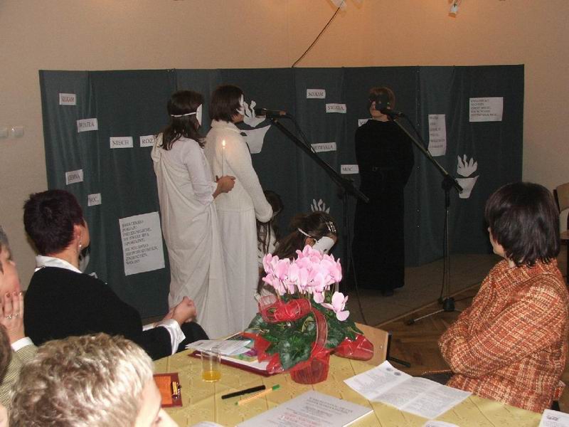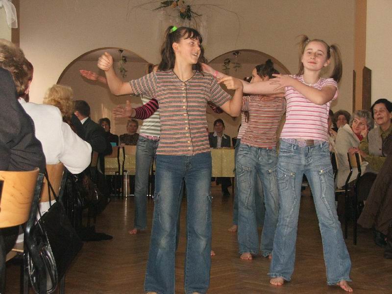 Nie zabrakło również elementu rozrywkowego. Najwdzięczniejszymi, bo najmłodszymi uczestnikami imprezy była grupa przedszkolaków z Przedszkola w Wieprzu, która pod opieką L. Pawlus, A. Juraszek i B. Dudek przywitała wszystkich zebranych piosenką. Oprawę artystyczną przygotowała F. Zawada i A. Waliczek wraz z uczennicami klasy VI Szkoły Podstawowej im. Ks. J. Twardowskiego w Brzuśniku, krótkim montażem muzyczno – poetyckim zatytułowanym „Światło nadziei” wprowadziły gości w liryczno refleksyjny nastrój. Gościnnie wystąpiły także uczennice Szkoły Podstawowej im. J. Klicha w Wieprzu, które pod kierunkiem B. Dziergas przygotowały wspaniały układ taneczny. Sekcja emerytów i rencistów przygotowała wystawę swojej twórczości i zaprezentowała kronikę swojej działalności. Dokumentację fotograficzną sporządził dyr. GOK - M. Jurasz. Wystawny poczęstunek przygotowały Panie z KGW pod czujnym okiem Czesławy Kłusak. Jednym z punktów programu była niespodzianka, którą okazał się koncert zespołu NIE WYCHYLAJ SIĘ z Jeleśni z repertuarem poezji śpiewanej, choć nie tylko.
