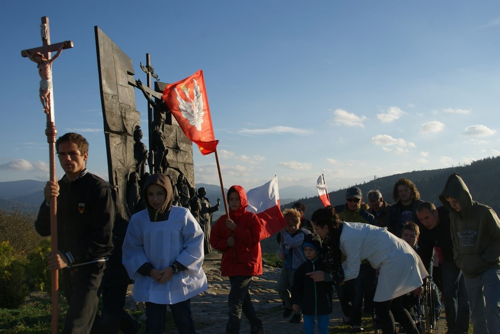 Przy Kurhanie Pamięci Narodowej, w którym w 2005 r. złożono ziemię z grobu wówczas Ks. Jerzego Popiełuszki odmówiona została Koronka do Miłosierdzia Bożego.