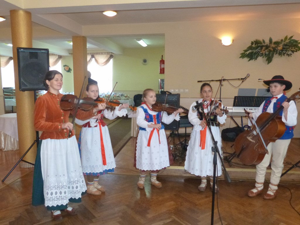 Po oficjalnej części tradycyjnie odśpiewano „Sto lat”, a następnie skonsumowano przepyszny obiad przygotowany przez KGW w Brzuśniku. Tak nieprzeciętnej uroczystości towarzyszyły muzyka i śpiew wykonywane przez członków Zespołu Regionalnego „Grojcowianie” i Pana Mariana Wrzeszcza.