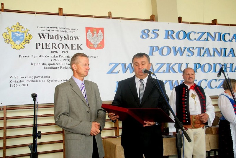 Nieprzypadkowo na miejsce tej uroczystości wybrano Radziechowy i tutejszą parafię pw. św. Marcina. To właśnie tu w Radziechowach w 1926 r powołano do życia pierwsze Ognisko Związku Podhalan na Żywiecczyźnie. Uroczysta Jubileuszowa msza św. zgromadziła ok 500 gości z Żywiecczyzny i całego Podhala. W uroczystości wzięły udział liczne poczty sztandarowe, parlamentarzyści, samorządowcy, przedstawicie Zarządu Głównego ZP, stowarzyszeń oraz wielu członków i sprawdzonych przyjaciół żywieckiego Oddziału ZP. Uroczystości uświetnił Zespół Regionalny "Grojcowianie" z Wieprza, Orkiestra Dęta i Kapela "Jodełki z Radziechów. Mszy św. przewodniczył i homilię wygłosił Ks. Biskup Tadeusz Pieronek, syn Prezesa Ogniska ZP w Radziechowach w latach 1929-1939. To właśnie Władysławowi Pieronkowi poświęcona została z tej okazji tablica pamiątkowa na budynku Domu Ludowego w Radziechowach. Poświęcenia dokonał Ks. Biskup a odsłonięcia najbliższa rodzina wraz z Wójtem Gminy Grzegorzem Figurą i nowym Prezesem OGŻ ZP Stanisławem Lizakiem z Radziechów.