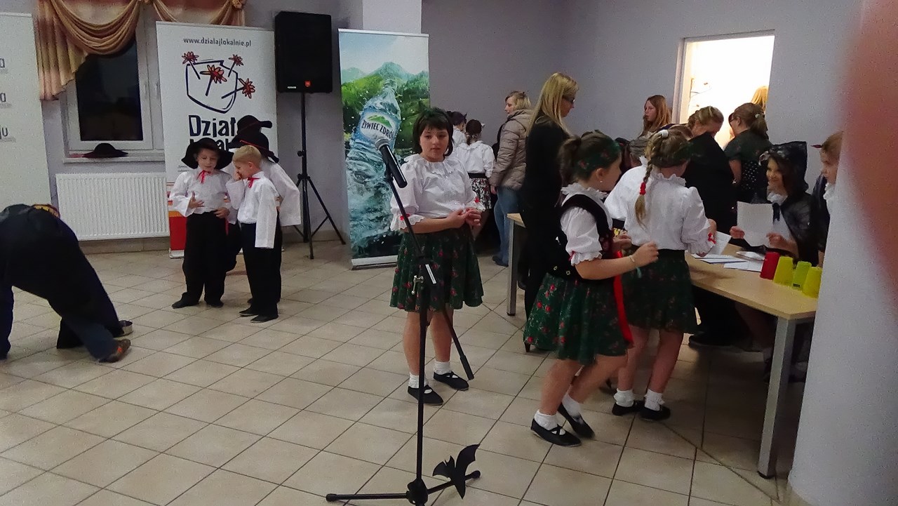 Zespół wykonał trzy piosenki ludowe w opracowaniu pop – folkowym. Były to „Hajduk” i „ Siustu, siustu”. Dzieci wystąpiły w pełnej gali, czyli w nowych strojach uszytych w ramach realizacji projektu Działaj lokalnie”. Występ był bardzo udany. Uczniowie popisali się swoimi umiejętnościami wokalno – tanecznymi, zdobytymi podczas prób zespołu prowadzonych przez nauczycielki ze Szkoły Podstawowej z Przybędzy. Publiczność dopisała, było dużo zaproszonych gości, rodziców dzieci występujących oraz mieszkańców Przybędzy. Dla wszystkich uczestników przewidziano atrakcyjne niespodzianki i wróżby andrzejkowe przygotowane przez panie nauczycielki.