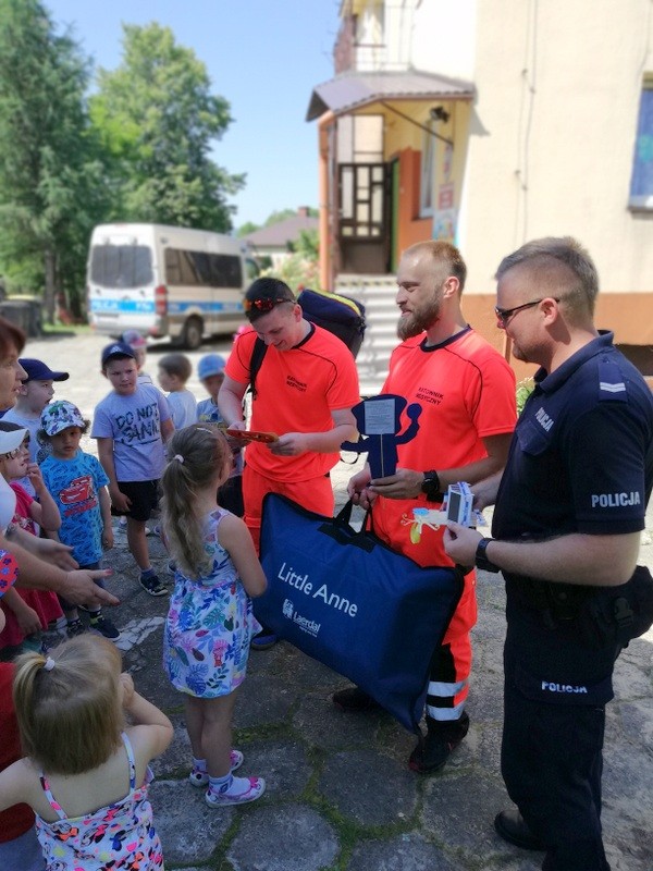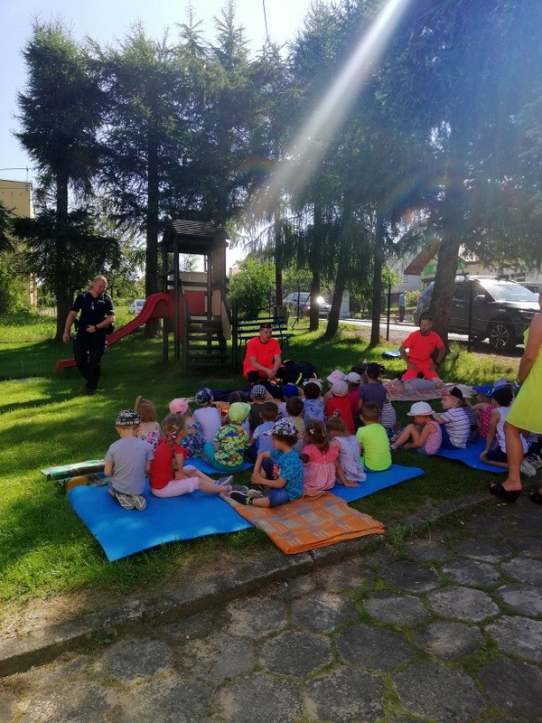 Wakacje dla przedszkolaków już tuż, tuż i wszyscy pragniemy, aby dzieci wróciły po nich do przedszkola zdrowe, wypoczęte i pełne zapału do zabawy. Dlatego też 11 czerwca 2019r. w naszym przedszkolu odbyły się warsztaty dla dzieci pod hasłem "Bezpieczne wakacje". Warsztaty przeprowadzili funkcjonariusze policji z Samodzielnego Pododdziału Prewencji Policji w Bielsku-Białej. Zgodnie z tytułem warsztatów ich nadrzędnym celem było przygotowanie przedszkolaków do "Bezpiecznych wakacji". Dzieci kolejny już raz wzbogacały wiedzę i umiejętności z zakresu zasad ruchu drogowego, bezpiecznej zabawy w domu, ogrodzie czy nad zbiornikiem wodnym. Uczyły się wykonywania prostych czynności udzielania pierwszej pomocy oraz prawidłowego zachowania się w czasie wypadku, w sytuacjach zagrożenia życia lub zdrowia swojego i innych.