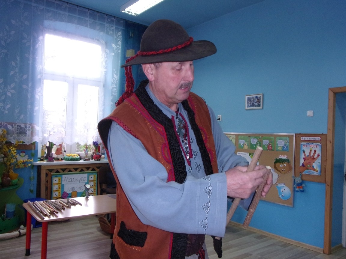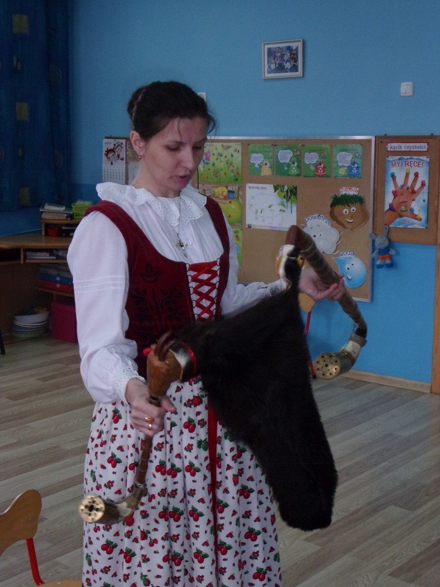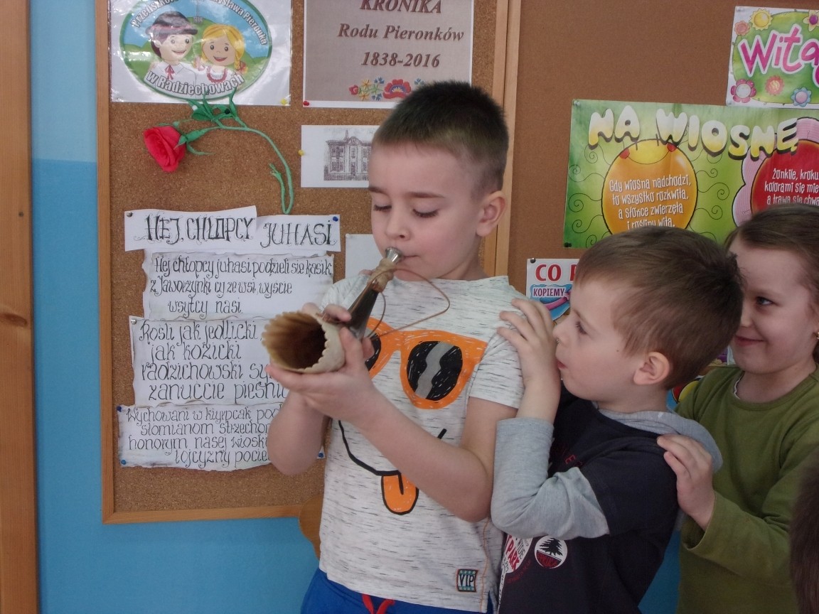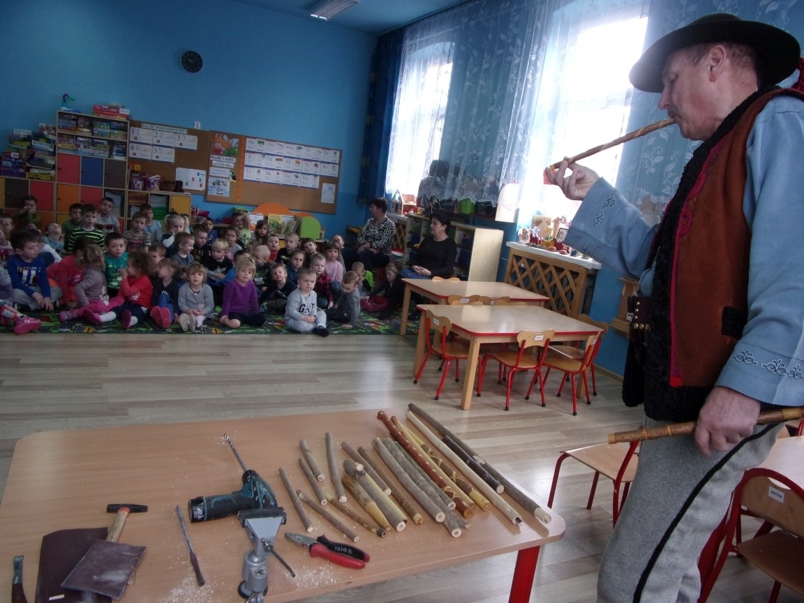 Odpowiedzi na to pytanie poszukują od kilku tygodni  wychowankowie Przedszkola im. Władysława Pieronka w Radziechowach. Realizacja regionalnego projektu edukacyjnego na temat życia muzycznego w naszym regionie zakłada badanie środowiska muzycznego towarzyszącego góralom żywieckim przez całe ich życie. Dzwon kościelny wyznaczający rytm życia, organy kościelne towarzyszące wszystkim ważnym wydarzeniom, orkiestra dęta  podczas uroczystości i w chwilach odpoczynku po ciężkiej pracy… Od zarania dziejów ludzie próbowali ukoić trudy życia muzyką. Najlepiej tą najprostszą, dostępną dla każdego. Już małe dzieci tworzyły piszczałki ze słomy, gęsiego pióra, dzikiego bzu. Pogwizdywały kupionymi na targu glinianymi ptaszkami, grały na ulepionych z gliny okarynach. Wraz z ich wzrastaniem przychodziła pora na umilanie pasterskiej pracy grą na rogach pasterskich, trombitach, fujarkach. Te wszystkie piękne historie opowiedzieli dzieciom zaproszeni do przedszkola folkloryści: Brygida Murańska – kierownik muzyczny zespołu Grojcowianie, poetka  i Grzegorz Brodka – twórca tradycyjnych instrumentów pasterskich, poeta ludowy. Pani Brygida oprócz tych prostych pasterskich zaprezentowała dzieciom bardziej skomplikowane instrumenty. I tak w całym przedszkolu rozległy się  dźwięki skrzypiec i heligonki. Ogromne zainteresowanie wzbudziły dudy. Z każdej nuty i śpiewu pani Brygidy wyłania się umiłowanie muzyki. Rodzina Wrzeszczów, z której wywodzi się pani Brygida Murańska  z Juszczyny muzykuje od wielu pokoleń.  Pan Grzegorz Brodka przybył na spotkanie z przedszkolakami z całym warsztatem. Dzieci z zachwytem  obserwowały, jak na ich oczach powstaje piszczałka wielkopostna. Według tradycji góralskiej Jedynie dźwięk tego instrumentu mógł się bezkarnie rozlegać  w okresie Wielkiego Postu poprzedzającego Wielkanoc.  Przedszkolaki  próbowały swoich sił wydobywając dźwięki z ogromnych rogów pasterskich jaworowych i świerkowych.  Donośny wakat, czyli swoista „perkusja” góralska wywołał  radość u małych muzyków. Wszystkie te instrumenty Pan Grzegorz wykonuje własnoręcznie.