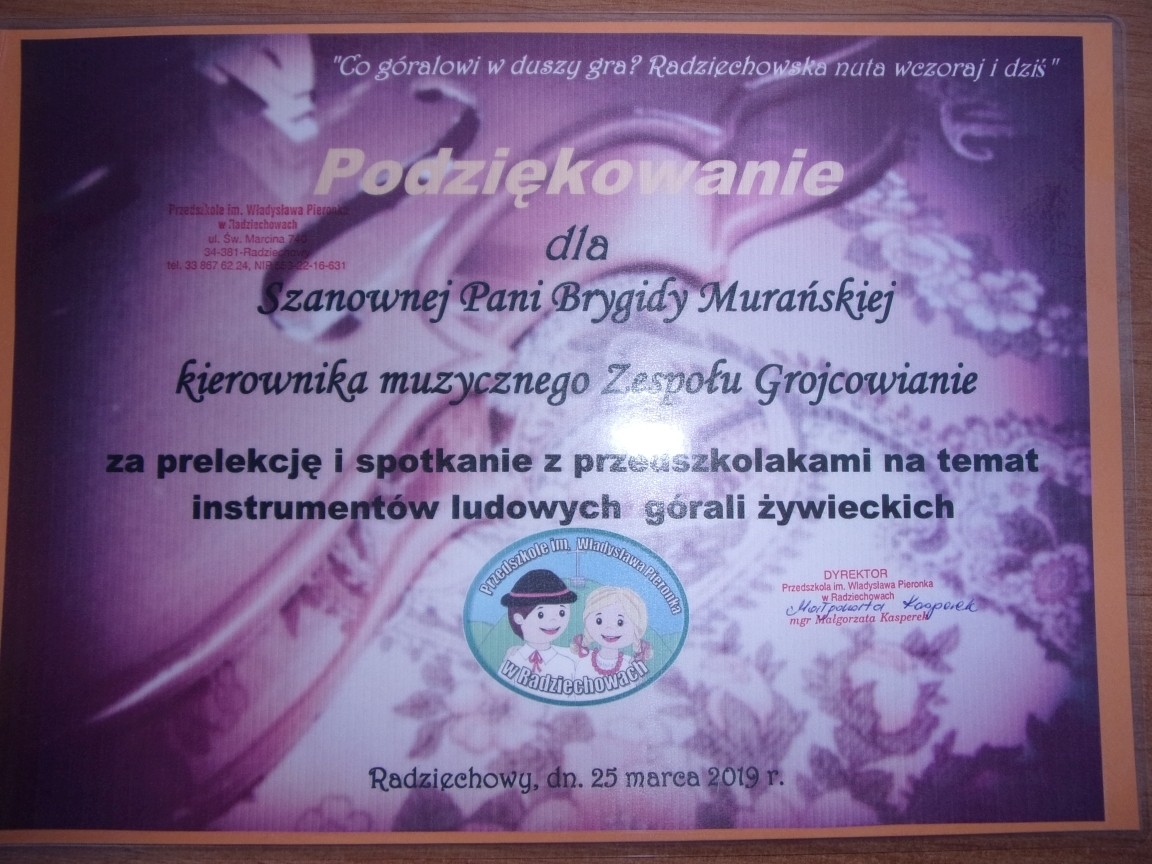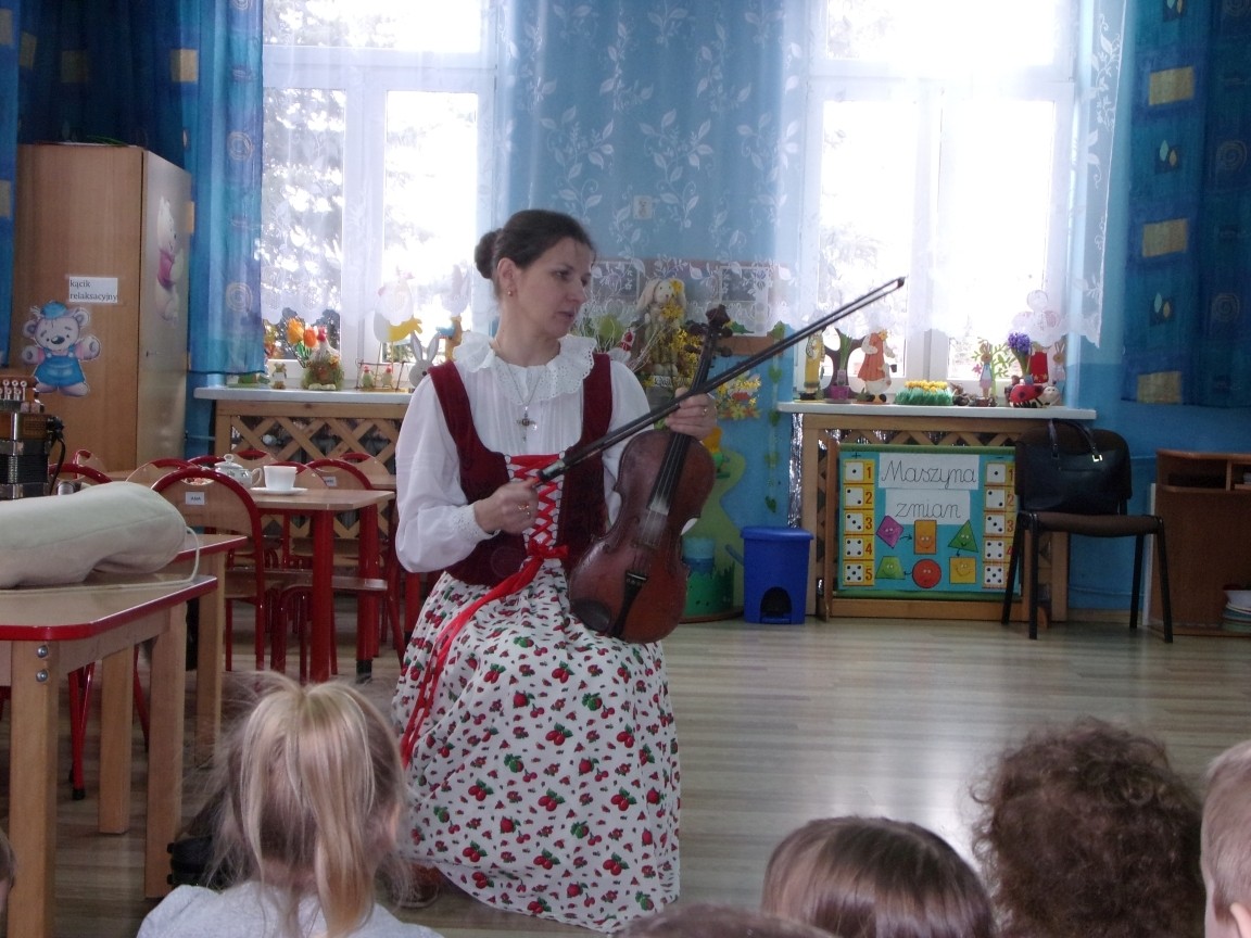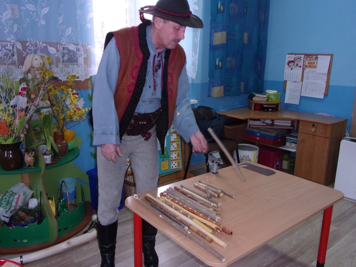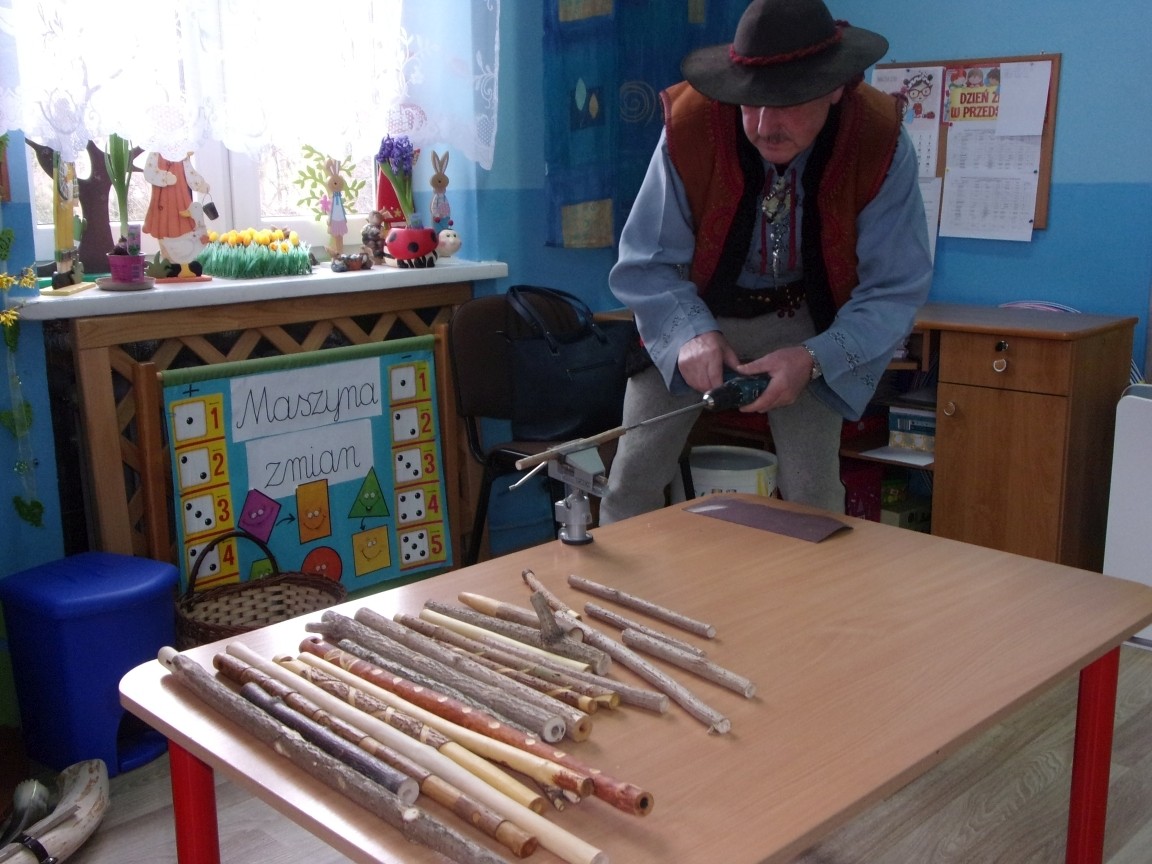Odpowiedzi na to pytanie poszukują od kilku tygodni  wychowankowie Przedszkola im. Władysława Pieronka w Radziechowach. Realizacja regionalnego projektu edukacyjnego na temat życia muzycznego w naszym regionie zakłada badanie środowiska muzycznego towarzyszącego góralom żywieckim przez całe ich życie. Dzwon kościelny wyznaczający rytm życia, organy kościelne towarzyszące wszystkim ważnym wydarzeniom, orkiestra dęta  podczas uroczystości i w chwilach odpoczynku po ciężkiej pracy… Od zarania dziejów ludzie próbowali ukoić trudy życia muzyką. Najlepiej tą najprostszą, dostępną dla każdego. Już małe dzieci tworzyły piszczałki ze słomy, gęsiego pióra, dzikiego bzu. Pogwizdywały kupionymi na targu glinianymi ptaszkami, grały na ulepionych z gliny okarynach. Wraz z ich wzrastaniem przychodziła pora na umilanie pasterskiej pracy grą na rogach pasterskich, trombitach, fujarkach. Te wszystkie piękne historie opowiedzieli dzieciom zaproszeni do przedszkola folkloryści: Brygida Murańska – kierownik muzyczny zespołu Grojcowianie, poetka  i Grzegorz Brodka – twórca tradycyjnych instrumentów pasterskich, poeta ludowy. Pani Brygida oprócz tych prostych pasterskich zaprezentowała dzieciom bardziej skomplikowane instrumenty. I tak w całym przedszkolu rozległy się  dźwięki skrzypiec i heligonki. Ogromne zainteresowanie wzbudziły dudy. Z każdej nuty i śpiewu pani Brygidy wyłania się umiłowanie muzyki. Rodzina Wrzeszczów, z której wywodzi się pani Brygida Murańska  z Juszczyny muzykuje od wielu pokoleń.  Pan Grzegorz Brodka przybył na spotkanie z przedszkolakami z całym warsztatem. Dzieci z zachwytem  obserwowały, jak na ich oczach powstaje piszczałka wielkopostna. Według tradycji góralskiej Jedynie dźwięk tego instrumentu mógł się bezkarnie rozlegać  w okresie Wielkiego Postu poprzedzającego Wielkanoc.  Przedszkolaki  próbowały swoich sił wydobywając dźwięki z ogromnych rogów pasterskich jaworowych i świerkowych.  Donośny wakat, czyli swoista „perkusja” góralska wywołał  radość u małych muzyków. Wszystkie te instrumenty Pan Grzegorz wykonuje własnoręcznie.