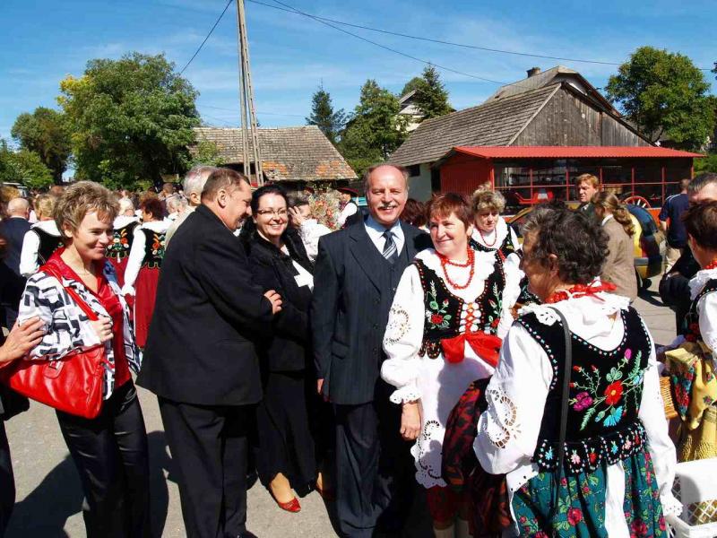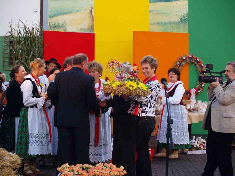 i „ Grojcowian „ oraz zwiedzić wystawę rolniczą i KGW Radziechowy. Przewodnicząca wraz z Burmistrzem wręczyli upominki dla KGW i Wójta. Sami zaś otrzymali bochen dożynkowego chleba oraz piękny wieniec zrobiony przez mieszkańców sołectwa Przybędza, wręczanym przez radnego i sołtysa. Goście również rozmawiali z rolnikami i radnymi na tematy gospodarcze i administracyjne, oraz możliwościach pozyskiwania środków z funduszy Unii Europejskiej. Na zakończenie goście zaprosili Wójta z Radą oraz Edwarda Dudka na Jubileuszowy XXX Bieg Gwarków ( będzie to 30 występ Dudka na trasach Andrzejówki ) który odbędzie na przełomie stycznia i lutego 2008 roku.