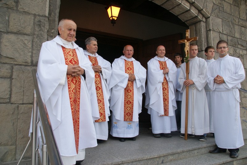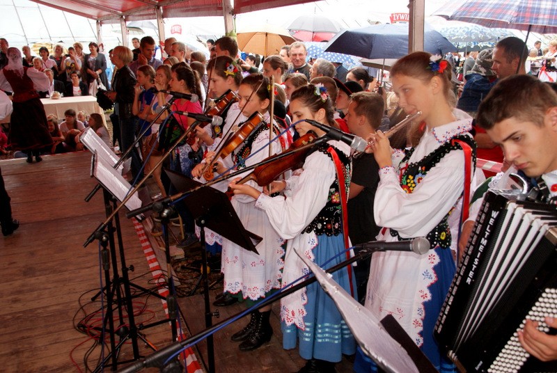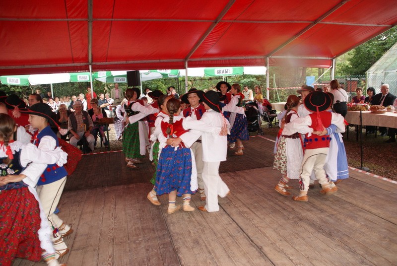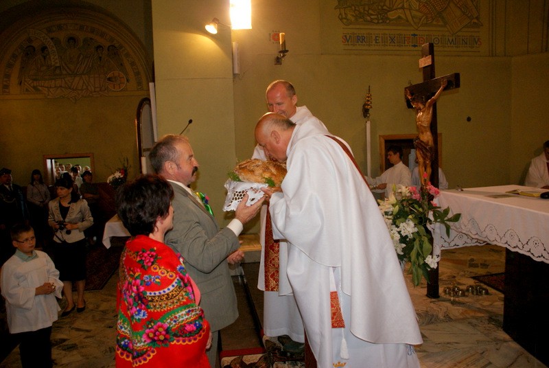 Uroczystość rozpoczęłą się oczywiście w Kościele Parafialnym pw. Niepokalanego Serca NMP w Wieprzu. Mszy św. Przewodniczył Ks. Ryszard Kubasiak a w koncelebrze Najświętszą Ofiarę sprawowali m.in. Ks. Jerzy Matura z Wieprza i Ks. Kazimierz Buba z Juszczyny. W procesji darów ofiarnych szli Gospodarze Dożynek: Jolanta Duraj i Stanisław Kupczak z Brzuśnika oraz przedstawicielki wszystkich Kół Gospodyń Wiejskich tj. Brzuśnik, Wieprz, Bystra, Radziechowy, Juszczyna i Przybędza. Uroczystość uświetniły też delegacje |wszystkich Ochotniczych Straży Pożarnych z terenu gminy Radziechowy-Wieprz oraz Oddziału Górali Żywieckich Związku Podhalan. Po mszy św. Dziękczynnej goście Dożynek przenieśli się do Budynku Wielofunkcyjnego w Brzuśniku gdzie Stowarzyszenie KGW „Brzuśnik” przygotowało wyśmienity obiad i ciasta. Od godz. 14.00 rozpoczęła się cześć wieńcowa uroczystości w trakcie której Panie z Brzuśnika odśpiewały tradycyjne przyśpiewki a gospodarze dożynek przekazali na ręce Wójta |Gminy Grzegorza Figury bochen chleba i dożynkowy wieniec. Dożynkowe chleby otrzymali też wszyscy goście obecni na uroczystości. Po tej części nastąpiła prezentacja artystyczna Dożynek w trakcie której zaprezentowali się „Mali Grojcowianie” oraz przebywający na Festiwalu „FOLNARE” w Rajczy Zespół Pieśni i Tańca „ROCHY” z Sędziszowa Małopolskiego. Nie zabrakło też stałej bywalczyni takich uroczystości czyli Pani „HELI” z Juszczyny, która z humorem przedstawiła zawiłości i kłopoty naszego górskiego rolnictwa i ekologii. Dobra zabawa w Brzuśniku trwała do późnych godzin wieczornych. W kolejnym roku spotykamy się na Dożynkach Gminnych w sołectwie Przybędza.