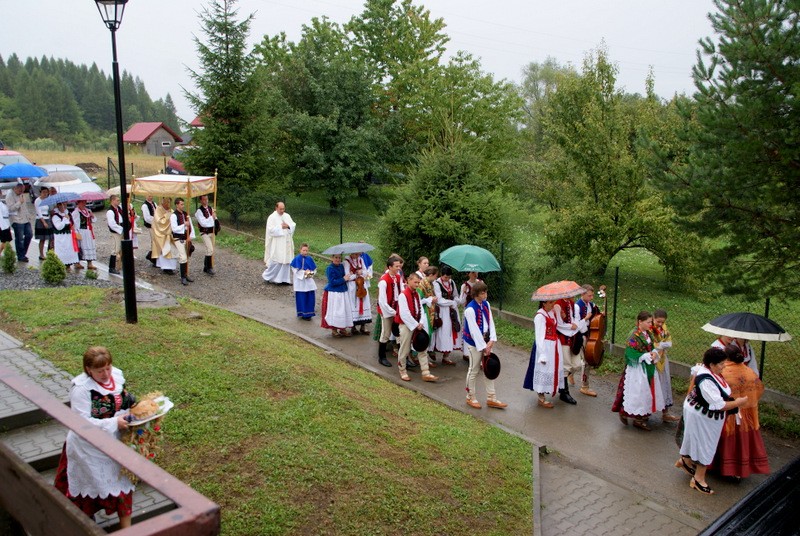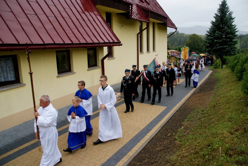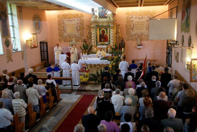 26 sierpnia 2012 r był dniem szczególnie uroczystym w sołectwie Przybędza. Mimo nie najlepszej pogody odpustowa procesja wypadła okazale, tym bardziej że wszyscy mogli podziwiać efekty prac modernizacyjno-budowlanych wokół Kościoła, które za przyczyną Ks. Janusza Dudka i mieszkańców Przybędzy dokonały się w ostatnim czasie. A jest tego imponująco dużo. Mszę św. Odpustową i procesję uświetnili swym śpiewem i obecnością „Grojcowianie” z Wieprza. Po mszy św. wszyscy goście udali się do nowej sali Domu Ludowego na poczęstunek. Miłym akcentem tego spotkania było PODZIĘKOWANIE jakie złożyli mieszkańcy Przybędzy na ręce kończącej wieloletnią pracę w miejscowej Szkole, Pani Dyrektor Marii Majcher. Było tradycyjne „sto lat” i wspaniały tort.