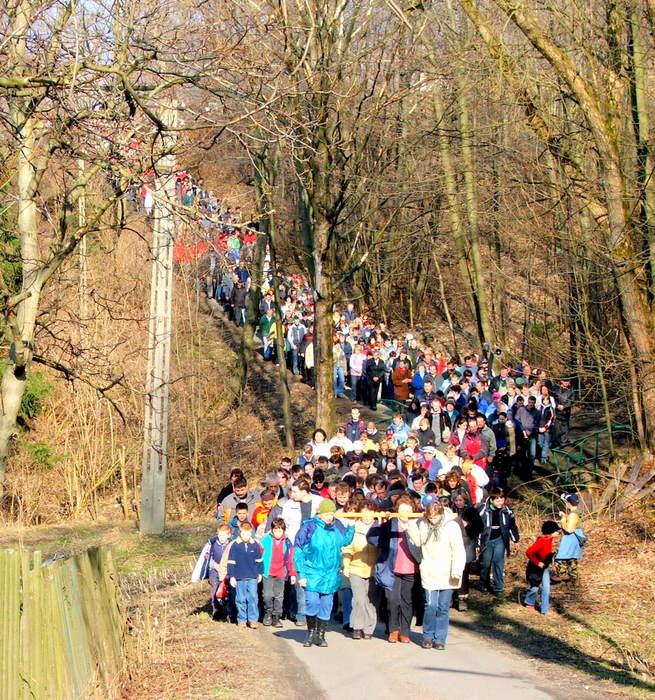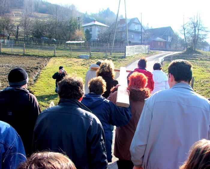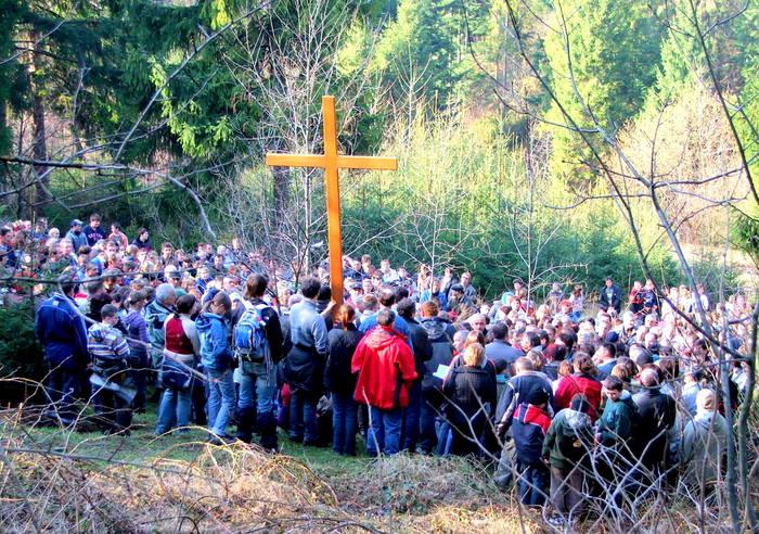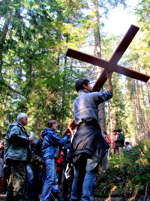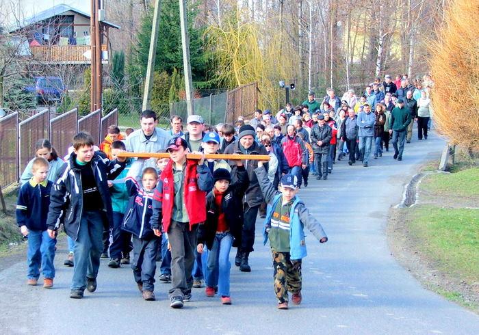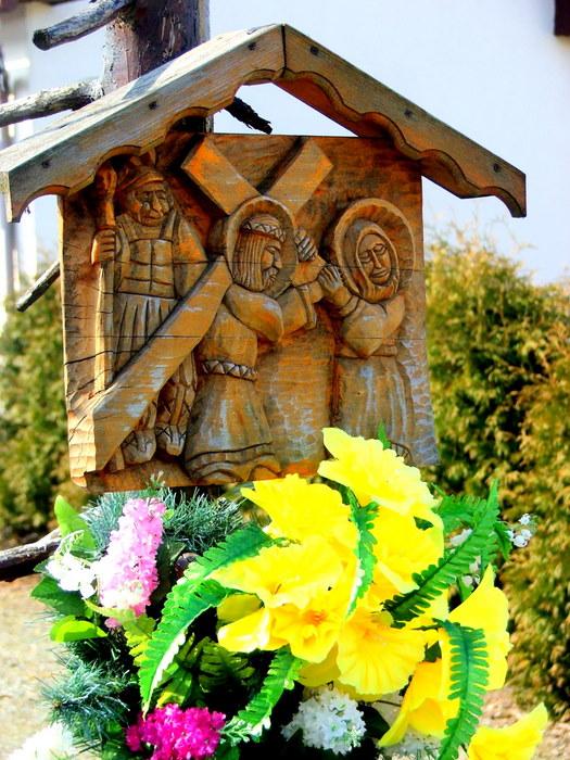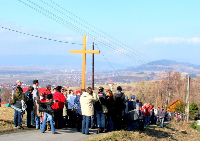 Trasa Drogi Krzyżowej wiedzie od Kościoła Parafialnego w Wieprzu przez sołectwo Brzuśnik i jego prawe skrzydło aż na Przegib i pod Kaplicę na Butorzonce. W 2001 r w 10 rocznicę pierwszej Drogi Krzyżowej staraniem byłych członków Katolickiego Stowarzyszenia Młodzieży zamontowano 14 płaskorzeźb na całej trasie do Butorzonki. Kapliczki wykonali rzeźbiarze - Ryszard Stroński i Marek Płoskonka. 30 marca 2001 r. w kościele parafialnym w Wieprzu Proboszcz Stanisław Jania poświęcił je i już 1 kwietnia uczestnicy kolejnej Drogi Krzyżowej mogli modlić się przy nowych stacjach. Nabożeństwu przewodniczył podobnie jak i w tym roku ks. Jerzy Matura. Droga na Butorzonkę nie należy do łatwych a ostatnie podejście na Przegib to prawdziwa “golgota” zwłaszcza gdy na tym zacienionym stoku zalega jeszcze śnieg.