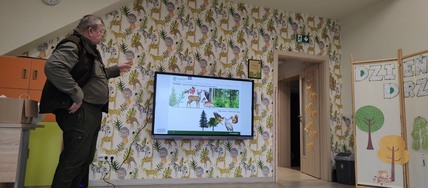 Z okazji Święta Drzewa w Przedszkolu Małego Księcia w Wieprzu odbyły się piękne warsztaty pod hasłem "Drzewa - bezcenny dar natury". Warsztaty dla naszych przedszkolaków bezpłatnie przeprowadził Pan Władysław Żółty, leśniczy Nadleśnictwa Węgierska Górka - specjalista do spraw edukacji. Spotkanie rozpoczęły przedszkolaki z oddziału IV, które razem z Panią M. Słowy i I. Dudek przygotowały dla naszego gościa i zebranych dzieci krótki montaż słowno - muzyczny, także w języku angielskim.