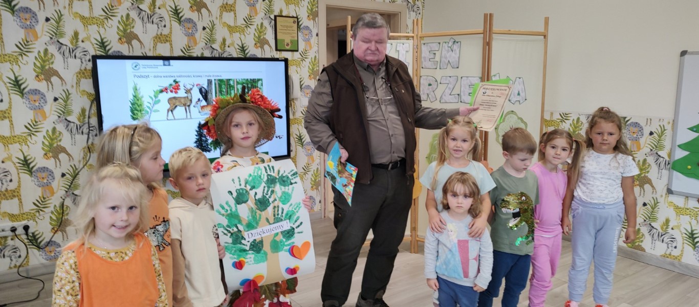 Serdecznie dziękujemy Panu Władysławowi Żółtemu za przeprowadzenie warsztatów i obecność w naszym przedszkolu. Dziękujemy również Panu Marianowi Knapkowi Nadleśniczemu Nadleśnictwa Węgierska Górka za pozytywną odpowiedź na nasze zaproszenie, współpracę i ufundowanie tak pięknych upominków dla dzieci. Życzymy wszystkim pracownikom Nadleśnictwa Węgierska Górka wielu sukcesów w pracy zawodowej.