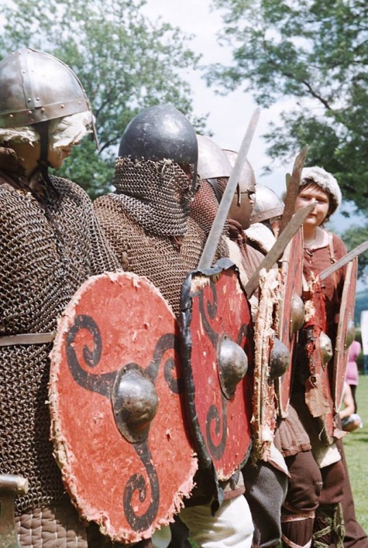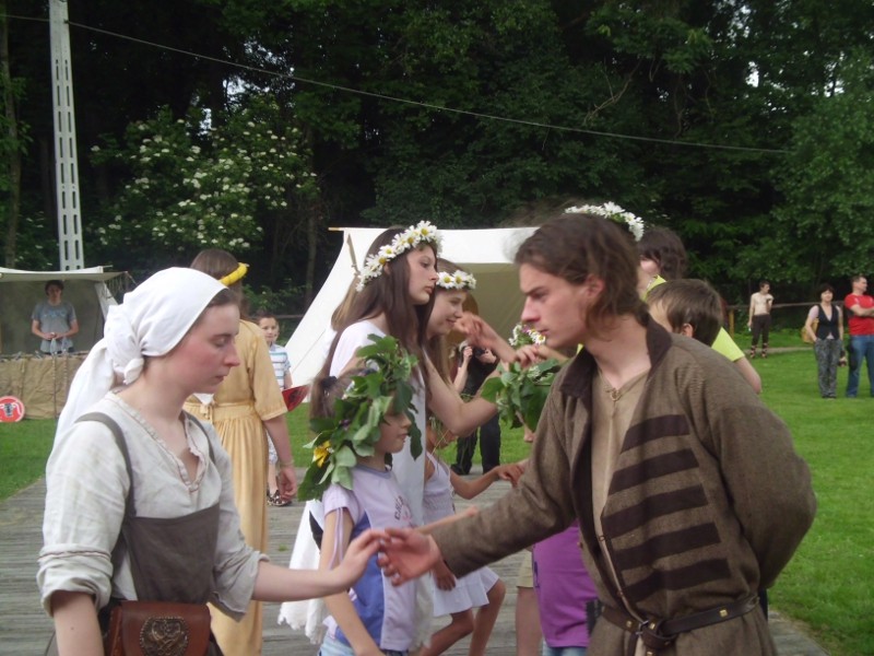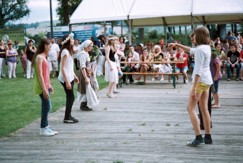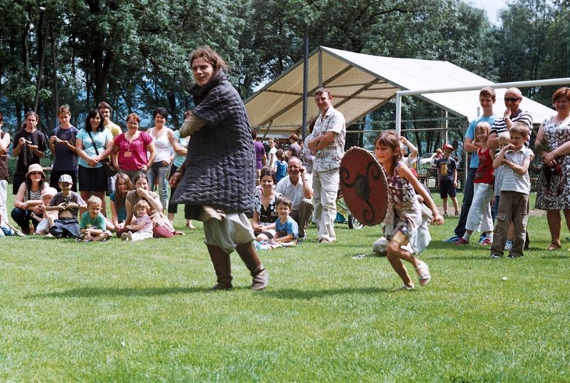 Tak więc mamy 16 czerwca, pogoda dopisuje, na kompleksie sportowo-rekreacyjnym obok Urzędu Gminy powstaje średniowieczna wioska, która wita nas, jak na Słowian przystało kaszą na dwa sposoby z miodem i orzechami lub też ze skwarkami. Obok w polowym piecu wypalają się gliniane naczynia. Dalej piękne niebieskookie słowiańskie dziewki plotą średniowieczne wianki i tkają kolorowe krajki. W tle słychać żywą i skoczną aczkolwiek jakże kojącą i czarującą muzykę. Ostatnim miejscem jakie przyciąga niezwykle uwagę, szczególnie męskiej części publiczności jest namiot z uzbrojeniem słowiańskich wojów oraz wikingów. Wyposażeni byli oni we włócznie, łuki, drewniane tarcze, zaś od VII wieku topory a w IX wieku również w miecze. Całą imprezę rozpoczął dowódca Grupy Rekonstrukcji Historycznych "Drużyna Południe", przedstawiając krótką historię słowiańskich wojów oraz omawiając poszczególne elementy zbrojnego wyposażenia swoich podwładnych. Po takiej dawce ciekawostek mogliśmy na żywo obejrzeć i wziąć czynny udział w rycerskich walkach. Oj co się działo, chłopaki układały się w przeróżne szyki bojowe, tłukły się mieczami i toporami po łbach na koniec zaprosili do zabawy sporą grupkę dzieciaków, które miały niezły ubaw. Powrót wojów z krwawych bitew wioska zawsze świętowała zabawą, tak też było i w naszej wiosce, po ciężkich walkach odprężaliśmy się w korowodach dawnych tańców. Piękne panny i panienki miękko balansowały w rytm dźwięku piszczałek i harf, na głowach powiewały im pachnące wianki a groźni wojowie, przeobrazili się w delikatnych gentelmanów. Każdy z uczestników pikniku mógł spróbować swoich umiejętności w strzelaniu z łuku, wytwarzaniu średniowiecznej ceramiki, tkaniu krajek czy też przymierzyć kompletny strój wikinga lub średniowiecznego rycerza. Nie było łatwo wbić się w to wszystko a jeszcze gorzej zdjąć, o czym przekonaliśmy się na własnej skórze. Po takich przeżyciach każdy mógł usmażyć sobie kiełbaskę na ognisku, trochę nam w tym przeszkodziła przelotna burza ale sytuacja została opanowana i piknikowy kiełbaskowy zwyczaj doszedł do skutku. Zwieńczeniem średniowiecznej podróży jak i zakończeniem pikniku było niesamowite widowisko kuglarstwa (fireshow), które podniosło poziom adrenaliny niejednemu widzowi, trzeba przyznać mają ludzie odwagę, zresztą jak na rycerzy przystało. Ale cóż wszystko co dobre szybko się kończy i tak też było z naszym piknikiem, uczestnicy zasmuceni tym że już koniec a z drugiej strony rozradowani emocjami, wracali do domostw z mieczami w ręku, w wiankach na głowie i z dźwiękiem niebiańskiej muzyki w sercach.