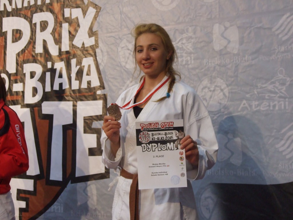 W kategorii juniorek -50 kg Kamila Wawrzyczek, oraz Monika Wojtas w kategorii seniorek + 60 kg, trochę szczęścia zabrakło Marcinowi Biegunowi, który debiutując w kategorii junior nie dostał się do strefy medalowej. Szkoleniowca z Arawashi cieszy medalowy powrót Kamili Wawrzyczek, która po rocznej przerwie powróciła do rywalizacji i zrobiła to na medal. W sukcesie zawodniczek niezwykle pomocnym jest systematyczne branie udziału w zajęciach wspomagających kształtowanie ducha waleczności, organizowanych przy wsparciu Moniki Wojtas, która będąc studentką psychologii i coachingu wdraża pewne elementy treningu mentalnego propagowanych w kierunkach, w których się uczy i wdraża te nowatorskie metody w zajęciach klubowych, nowinki te polepszają proces szkoleniowy w oparciu o najwyższe standardy obecnie propagowane. Szkolenia specjalistyczne przygotowują zdecydowanie lepiej zawodników w przełamywaniu emocjonalnych napięć przedstartowych – strachu, a zajęcia profilaktyczne z elementami terapii relaksacyjnej niwelującymi napięcia psychiczne związane z trudnymi sytuacjami w trakcie samej rywalizacji w karate, w której lęk nierzadko „paraliżuje” - bądź sprawia, że zawodnik ma w głowie „pustkę” w podjęciu decyzji, wykonania stosownej techniki sportowej, podkreśla szkoleniowiec Arawashi Bogusław Hutman - Wilczek. Jest to dla mnie ekstra nagroda od zawodniczek z okazji DNIA NAUCZYCIELA, podkreśla szkoleniowiec. W najbliższą sobotę kadra klubu wyjeżdża na Słowację na Orawski Turniej Karate.