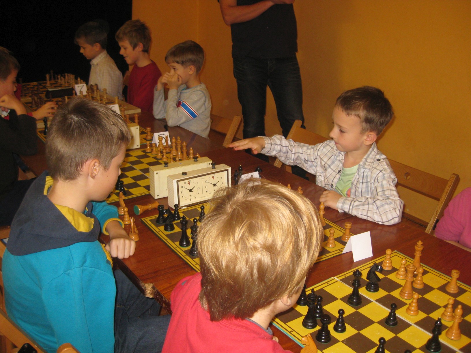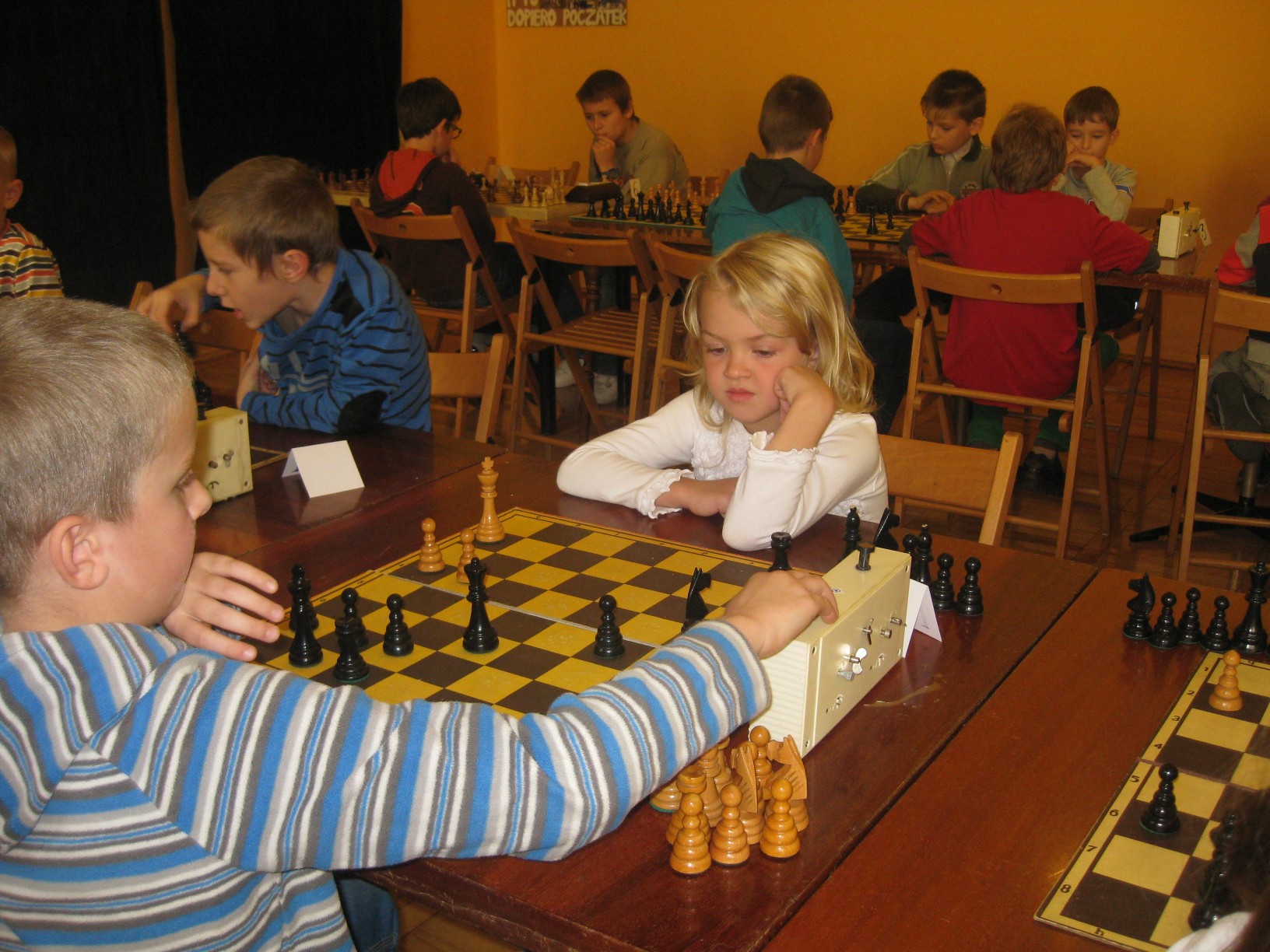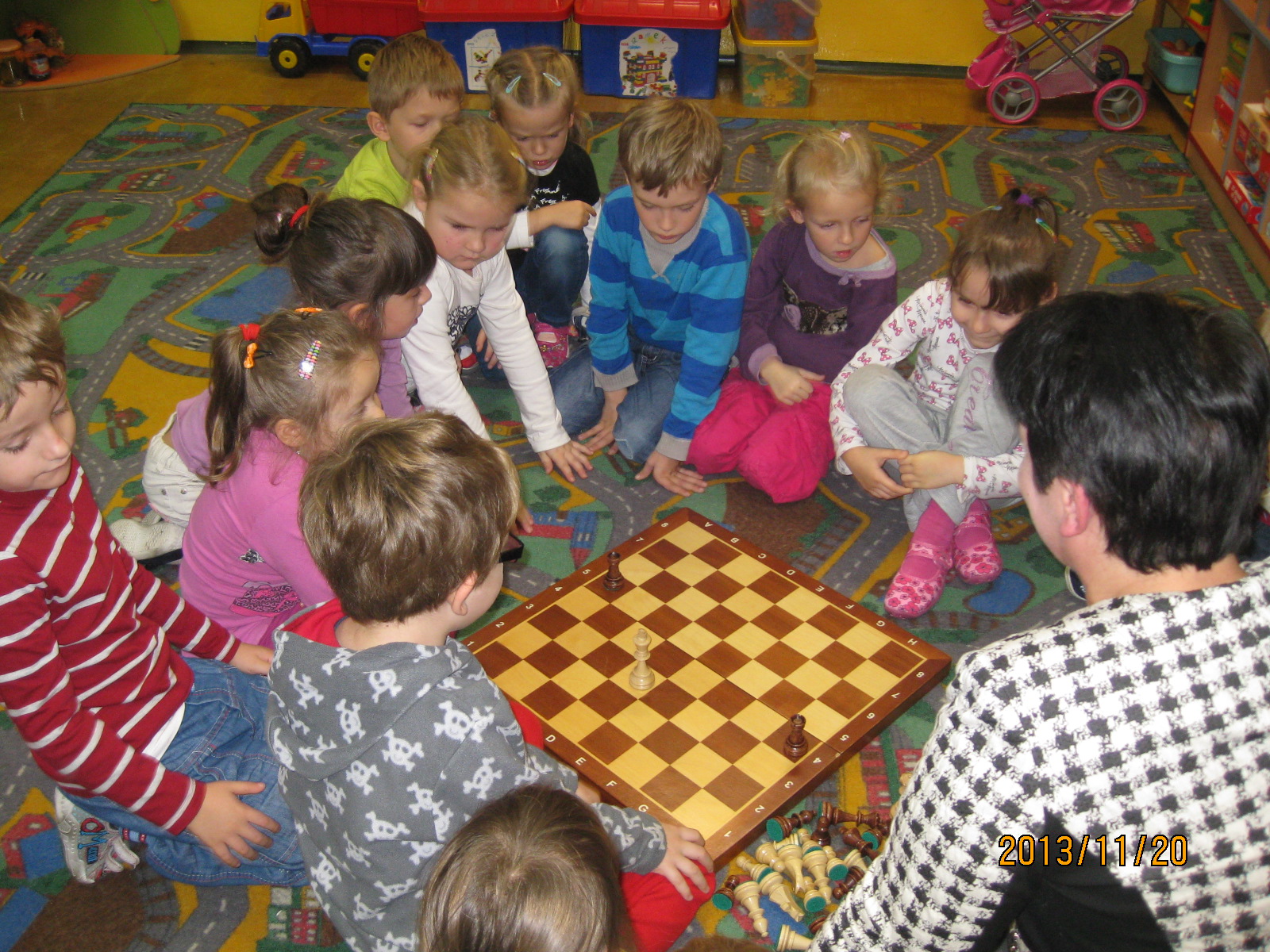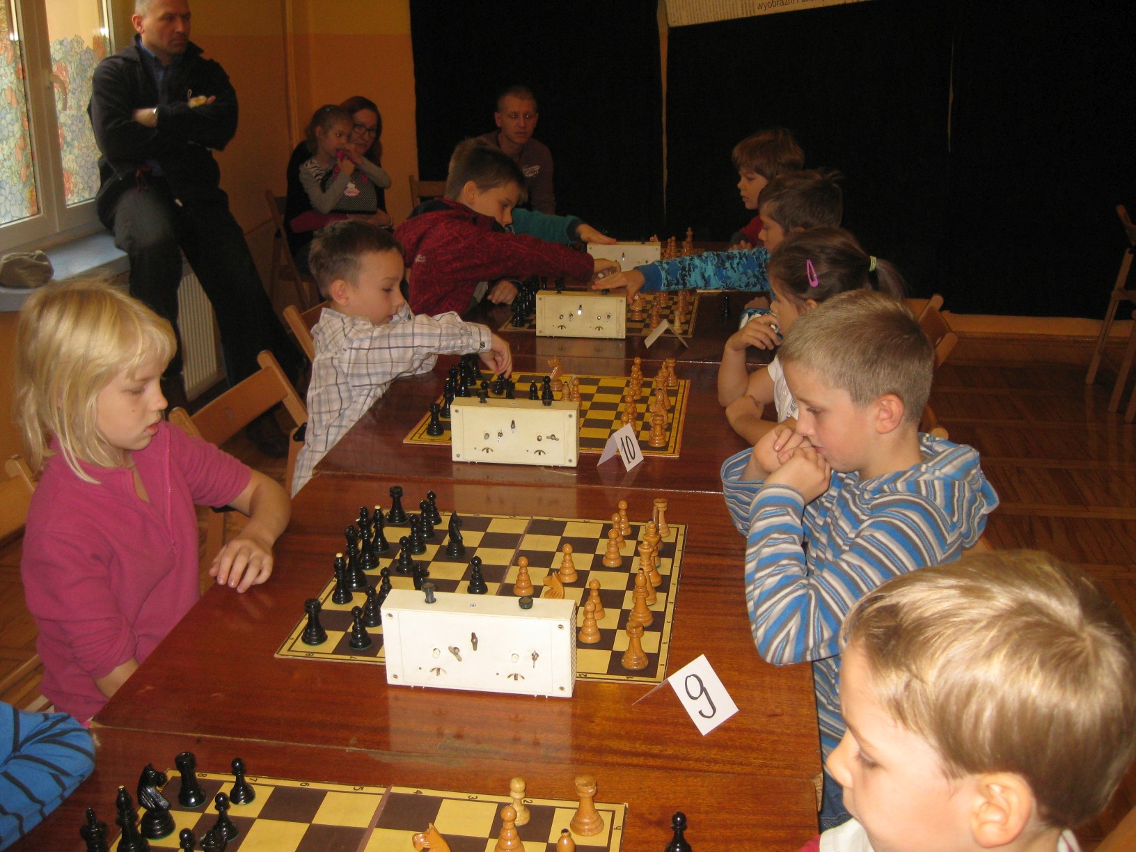 Zajęcia prowadzi dyrektor przedszkola mgr Małgorzata Kasperek , posiadająca uprawnienia i przygotowanie metodyczne do nauczania gry w szachy potwierdzone certyfikatem nadanym przez Polski Związek Szachowy. Przedszkole uczestniczy w projekcie ogólnopolskim pod patronatem Polskiego Związku Szachowego i Ministerstwa Edukacji Narodowej „Edukacja przez szachy w szkole”, skierowanym głównie do klas początkowych szkoły podstawowej. Wszystkie nasze starsze przedszkolaki znają podstawowe zasady tej królewskiej gry, a wśród nich odnajdujemy dzieci obdarzone szczególnym talentem w tej dziedzinie. Postanowiliśmy wypromować edukację szachową realizowaną w naszym przedszkolu na szczeblu regionalnym. W dniu 24.10.2015r. nasz przedszkolak Bartosz Janik (6 lat) i tegoroczna absolwentka Julia Biela (7 lat) wzięli udział w turnieju szachowym dla dzieci ze szkół podstawowych i przedszkoli organizowanym przez Dom Kultury w Kamienicy w Bielsku- Białej. Dwójka małych szachistów dzielnie reprezentowała Publiczne Przedszkole w Radziechowach, gdzie na co dzień ćwiczą swoje umiejętności szachowe (Bartek od ponad roku, a Julia już dwa lata). Byli jednymi z najmłodszych uczestników turnieju i bywało, że dane im było walczyć z zawodnikami niemal dwukrotnie starszymi od siebie. Bartek wygrał połowę z siedmiu partii i na 25-ciu zawodników zajął bardzo dobre 13-te miejsce. Dwukrotnie zwyciężył i raz zremisował z chłopcami z piątą kategorią szachową. Natomiast Julia zdobyła trzecie miejsce wśród dziewczynek biorących udział w turnieju. Równolegle do turnieju dzieci odbywał się turniej otwarty dla zaawansowanych szachistów, w którym wzięła udział dyrektor przedszkola Małgorzata Kasperek (I miejsce w grupie kobiet). Młodym szachistom serdecznie gratuluję udanego debiutu w turnieju, dziękuję za tak godne reprezentowanie Publicznego Przedszkola w Radziechowach w tej królewskiej grze i życzę dalszych sukcesów. Dziękuję Pani Joannie Janik i Panu Witoldowi Bieli za poświęcony czas i umożliwienie dzieciom udziału w turnieju. Do zmagań szachowych promujących naszą działalność i talenty wychowanków przygotowuje się kolejna grupa małych szachistów. Natomiast Bartek i Julia w najbliższym czasie zawalczą o uzyskanie V kategorii szachowej.