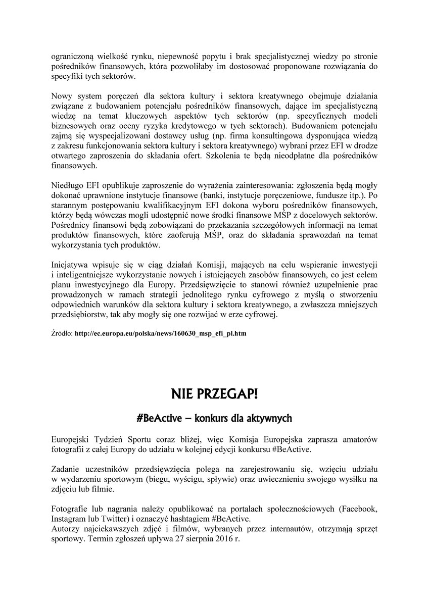 – stworzenie społeczności lokalnej możliwości przekazania Komisji Europejskiej informacji zwrotnej w postaci pytań, opinii i sugestii.