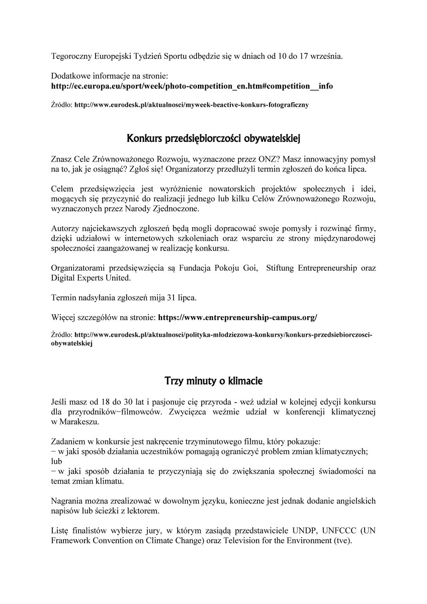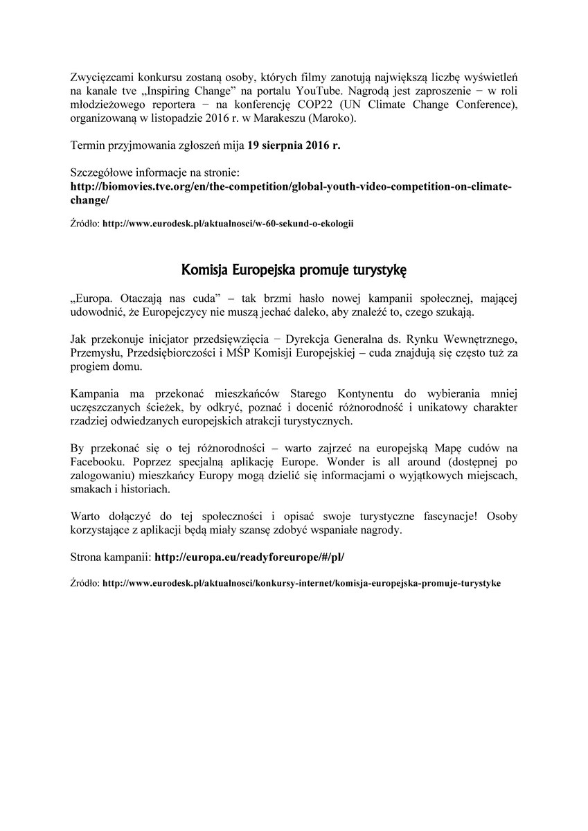 – organizowanie lokalnych i regionalnych imprez o charakterze europejskim, szkoleń i warsztatów na temat Unii Europejskiej dla różnych grup odbiorców (np. młodzież szkolna, studenci, przedsiębiorcy, nauczyciele), konkursów dla dzieci i młodzieży oraz innych spotkań informacyjno-edukacyjnych,