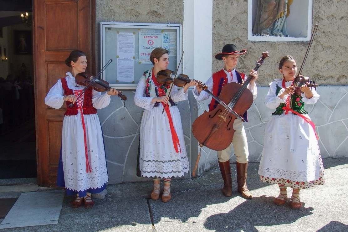 Już po raz trzeci zorganizowano FESTIWAL FOLKLORU GÓRALSKIEGO w Skoroszycach. To wyjątkowa impreza kultywująca tradycje mieszkańców wysiedlonych przed laty z naszych terenów. Gospodynie wniosły w tamtejsze tereny nowe tradycje, które dotrwały do dziś dnia. Z przyjemnością reprezentowali nas: Zespół Regionalny Grojcowianie, Zbójnicy od Żywca oraz Związek Podhalan – odział górali żywieckich i reprezentantki KGW z Gminy Radziechowy-Wieprz pięknie przedstawiając kultywowane tradycje. Warto zagłębić się w temat wysiedleń ludności z terenów Gminy Radziechowy-Wieprz. Niektóre rodziny pozostały na terenach Powiatu Nyskiego, wpisując się w tamtejszą ludność. Jednak do dziś dnia społeczność z Gminy Skoroszyce kultywuje tradycje górali żywieckich oraz godnie reprezentuje swoich przodków. Wszyscy zgodzimy się ze stwierdzeniem, iż historia, która nas łączy tworzy z nas rodzinę.