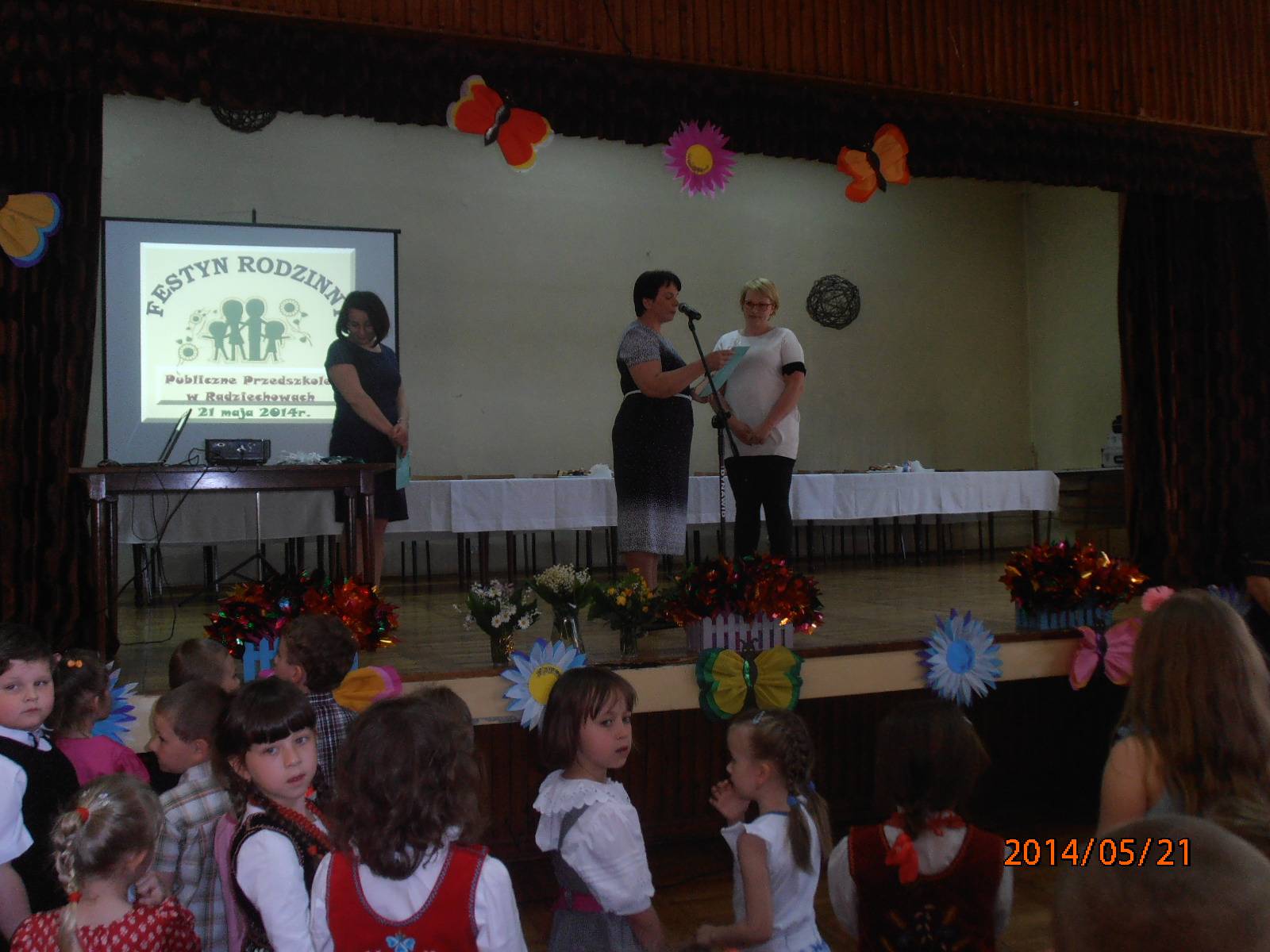 Impreza, będąca połączeniem Święta Matki, Ojca i przede wszystkim Dnia Dziecka wpisała się już w tradycję naszej placówki. Honorowymi gośćmi na naszym festynie byli: Wójt Gminy Radziechowy- Wieprz Pan mgr inż. Grzegorz Figura oraz Pani Dyrektor Gminnego Zarządu Oświaty Radziechowy- Wieprz mgr Elżbieta Kosiec. Serdecznie dziękujemy rodzicom naszych przedszkolaków za tak liczne przybycie. Mamy nadzieję, że wszyscy uczestnicy bawili się dobrze. Oprawę muzyczną festynu oraz prowadzenie zabaw i konkursów dla dzieci zapewnił Pan Sebastian Chmiel. Program artystyczny w wykonaniu przedszkolaków pod kierunkiem wychowawczyń spotkał się z ogromnie ciepłym przyjęciem. Konkursowe nagrody dla dzieci, słodycze i napoje zawdzięczamy sponsorom imprezy, czyli Państwu: Magdalenie i Markowi Skrzypkom, Agnieszce i Wacławowi Ciurlom, Beacie Okrzesik-Biela i Witoldowi Bieli, Katarzynie i Maciejowi Mikom, Oldze i Mariuszowi Koziełom, Annie i Grzegorzowi Markom, Monice i Piotrowi Mieszczakom, Monice i Jackowi Knapkom. Dziękujemy mamom, które upiekły ciasta oraz rodzicom naszych przedszkolaków, którzy wspomogli nas w zapewnieniu dzieciom upominków. Wielką radość przedszkolakom sprawiły pamiątki dla każdego dziecka w postaci barwnych wiatraczków. Jeszcze raz wszystkim uczestnikom Festynu Rodzinnego 2014 składamy najserdeczniejsze życzenia.