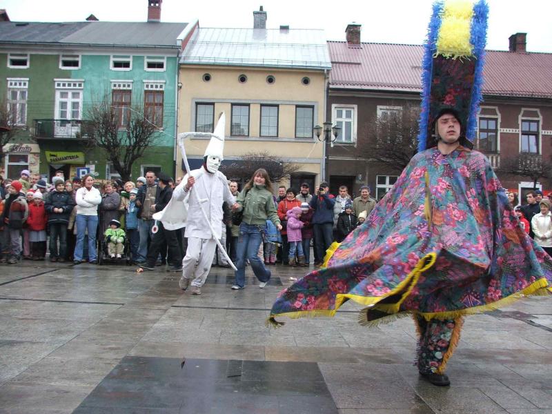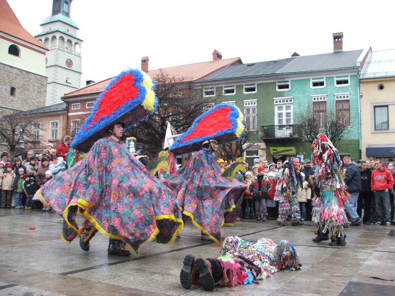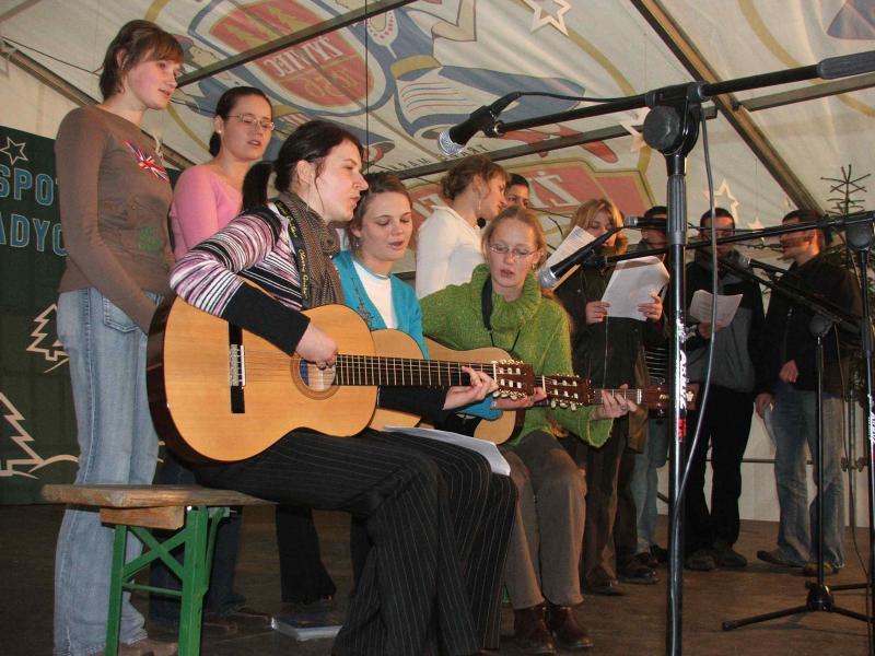 Sobota była dniem prezentacji między innymi naszej Gminy Radziechowy-Wieprz. W barwnym korowodzie ulicami Żywca i w żywiołowym kolędowaniu na żywieckim Rynku zaprezentowała się grupa dziadów noworocznych z Brzuśnika “Gronicki” pod kierownictwem Artura Figury. Jest to nowa grupa, która po raz pierwszy bierze udział w cyklu tegorocznych imprez związanych z “Żywieckimi Godami”. Obok tej grupy w namiocie na żywieckim Rynku zaprezentowała swe kolędy młodzieżowa grupa wokolno- instrumentalna “Qvo Vadis” z Radziechów kierowana przez Dariusza Jurasza. Olbrzymim powodzeniem cieszyła się wyśmienita “kwaśnica” przygotowana na tę okazję przez Gminny Ośrodek Kultury oraz nieocenione i niezawodne jak zawsze Panie z Koła Gospodyń Wiejskich w BRZUŚNIKU.