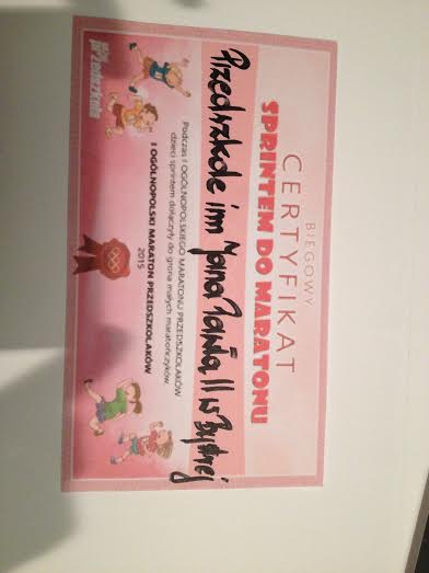 Serdecznie wszystkim uczestnikom w I Ogólnopolskim Maratonie Przedszkolaków „Sprintem do maratonu” dziękuję.