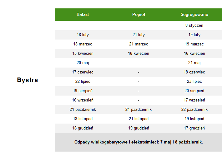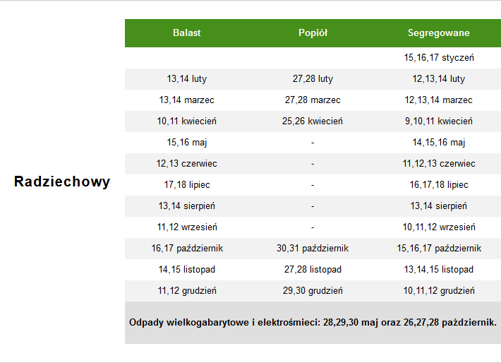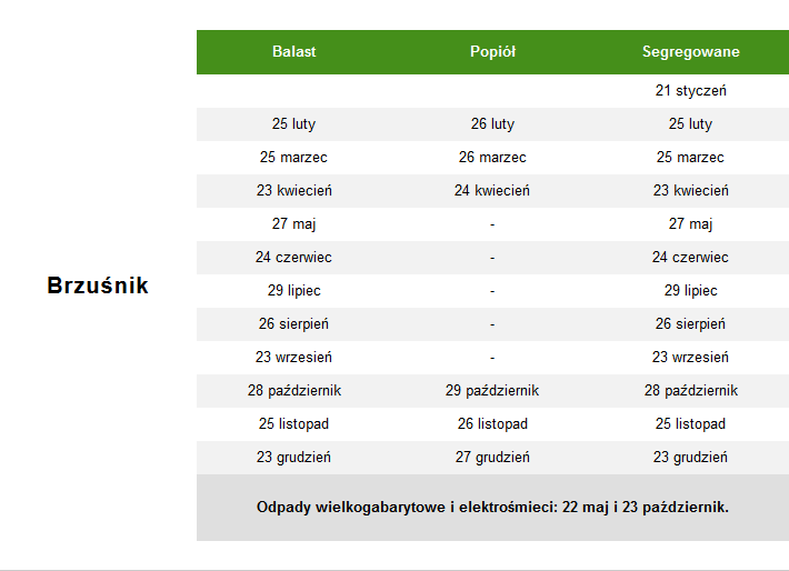 Balast oraz popiół odbierane są z Sołectw: