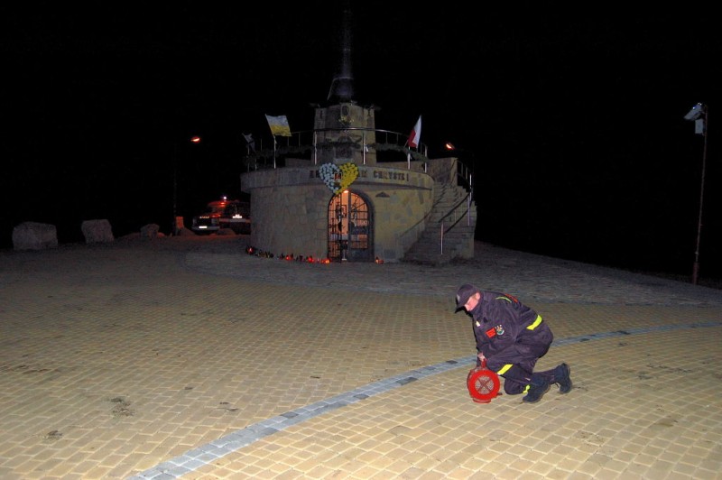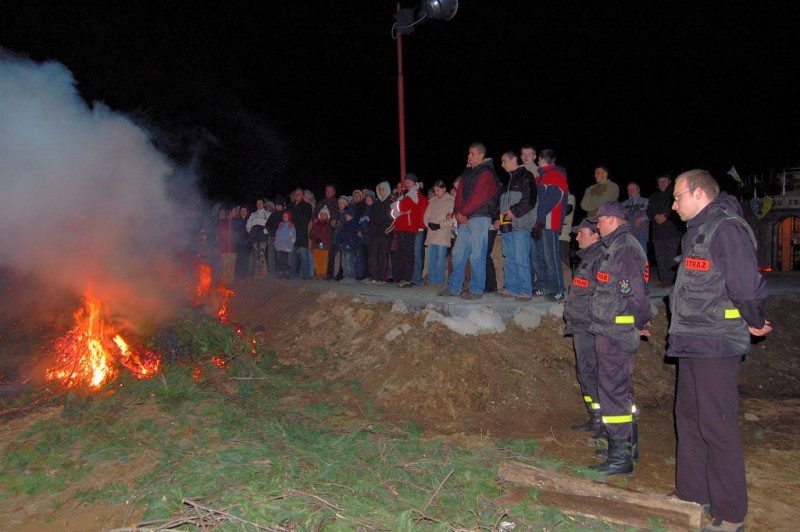 Wozy strażackie, migocąca sygnalizacja świetlna i dźwięk syreny alarmowej to wszystko razem stanowiło niepowtarzalną oprawę tej uroczystości. Warto było zadać sobie trochę trudu i być w tej godzinie na Matysce, a jaki kształt miał płomień o 21.37 to można zobaczyć na zdjęciu wykonanym przez Grzegorza Łukasika z Twardorzeczki.