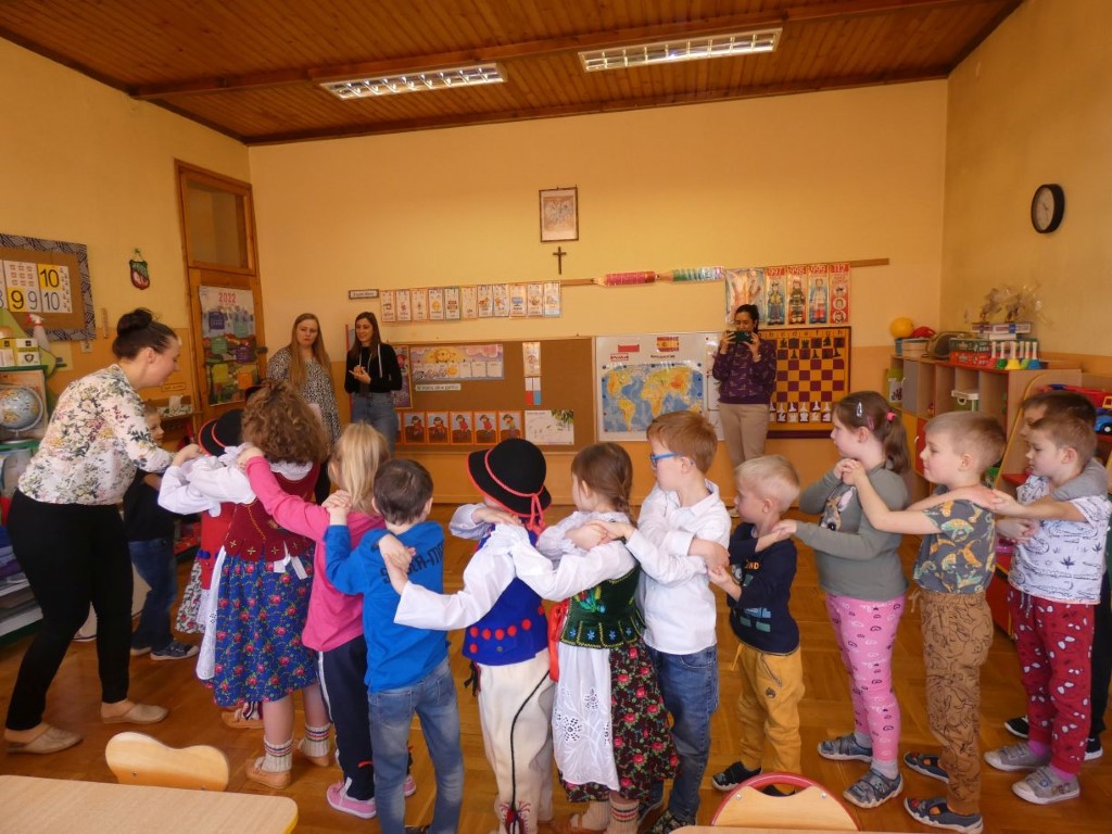 Tym razem rolę przewodnika i tłumacza pełniła nauczycielka języka angielskiego w naszym przedszkolu, Jolanta Frey. W ramach wizyty studyjnej hiszpańskie nauczycielki obserwowały zajęcia z języka angielskiego oraz zajęcia regionalne. Mieliśmy przyjemność zaprezentować hiszpańskim pedagogom regionalny charakter placówki. Przedszkolaki w pięknych góralskich strojach, śpiewające hymn naszego przedszkola wzbudziły zachwyt zagranicznych gości, którzy spędzili z nami cały dzień. Wspólna zabawa w ogrodzie przedszkolnym sprzyjała podziwianiu otoczenia przyrodniczego radziechowskiego przedszkola. Spotkanie było okazją do wzajemnej nauki języka hiszpańskiego i polskiego. Stanowiło też doskonały pretekst do rozmów i zajęć o roli Unii Europejskiej i kulturze Hiszpanii. W ten oto sposób działalność Przedszkola im. Władysława Pieronka w Radziechowach mogą poznać uczniowie i nauczyciele z dalekiego Toledo w Hiszpanii. Żywiecczyzna zrobiła na Hiszpankach ogromne wrażenie. Za kilka tygodni odwiedzi nas kolejna grupa hiszpańskich pedagogów.
