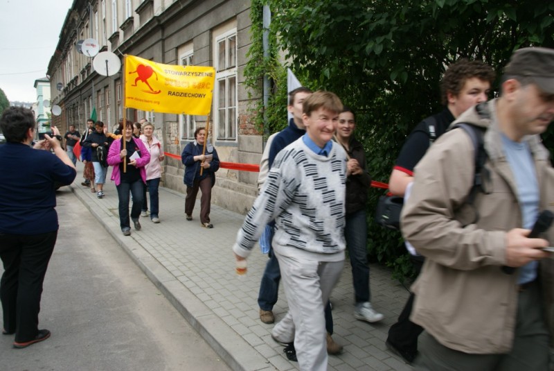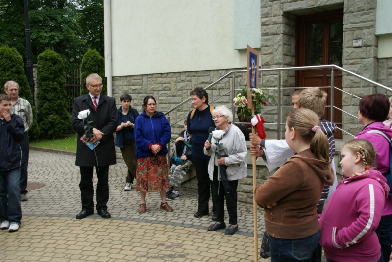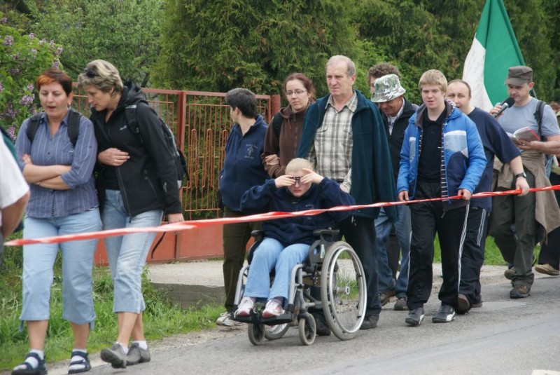 • Lipowa – tutaj przy Obelisku Jana Pawła II czkali na nas przewodniczący Rady Gminy Adam Lach i przedstawiciel Gminy Małgorzata Gąsiorek. Kilka chwil na porozmawianie i znów ruszamy w drogę, bo już w Gimnazjum im. Jana Pawła II w Twardzorzeczce czekają na nas – to ostatni postój. Tutaj dojadamy ciasto, pijemy herbatę i odpoczywamy. Nasze nogi przeszły już 29 km jeszcze tylko 4 ale to teren górzysty. Każdy zastanawia się, czy uda mu się pokonać ten ostatni odcinek? Czy nie będzie musiał korzystać z towarzyszących nam samochodów?