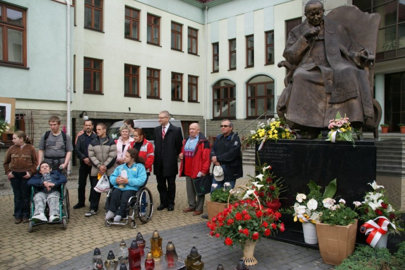 • Pomnik Jana Pawła II na dziedzińcu Kurii Diecezji Bielsko Żywieckiej – spotkanie z Ks. Biskupem Tadeuszem Rakoczym