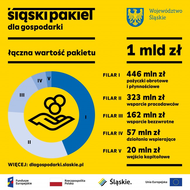 W związku z trudną sytuacją w gospodarce regionu wynikającą z panującej obecnie pandemii zakaźnej choroby COVID-19 wywoływanej przez koronawirusa SARS-CoV-2, oraz wychodząc naprzeciw oczekiwaniom przedsiębiorców, Zarząd Województwa Śląskiego pod przewodnictwem Marszałka Jakuba Chełstowskiego opracował "Śląski pakiet dla gospodarki", jako uzupełnienie działań administracji rządowej, który obejmuje swoim zasięgiem pięć filarów: