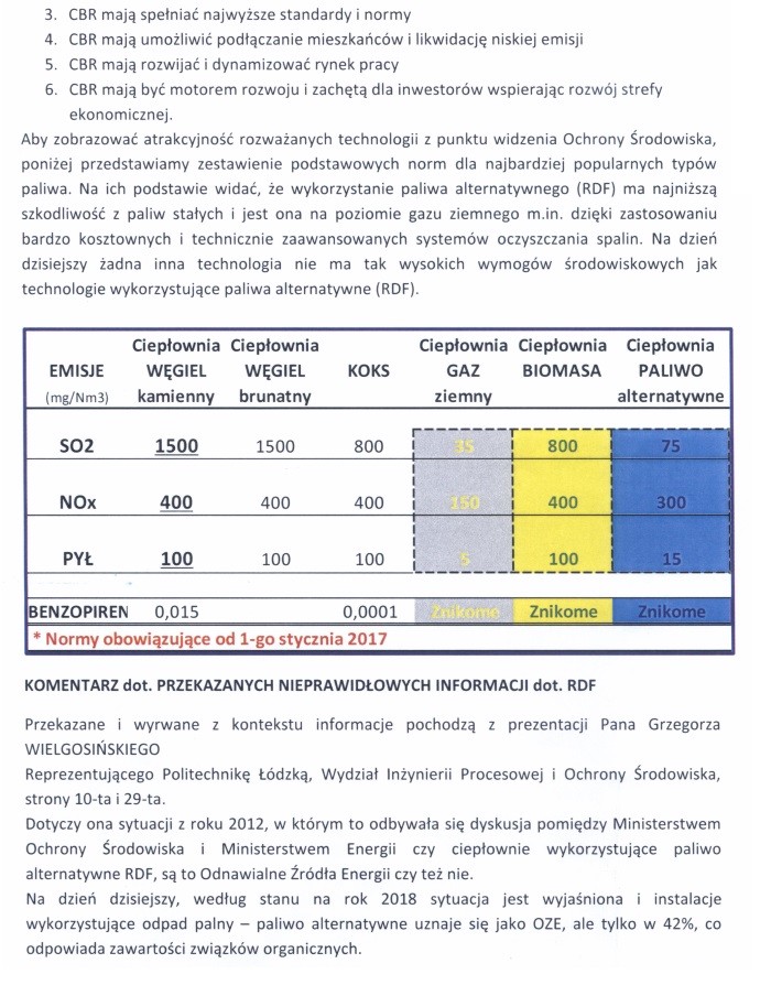 Potwierdzamy także, że nie będziemy na siłę forsować nowoczesnej technologii z XXI wieku, która może przynieść znaczne oszczędności dla mieszkańców i zapewnić potrzebną energię Strefie Ekonomicznej, a także przyczynić się do likwidacji smogu i smrodu.