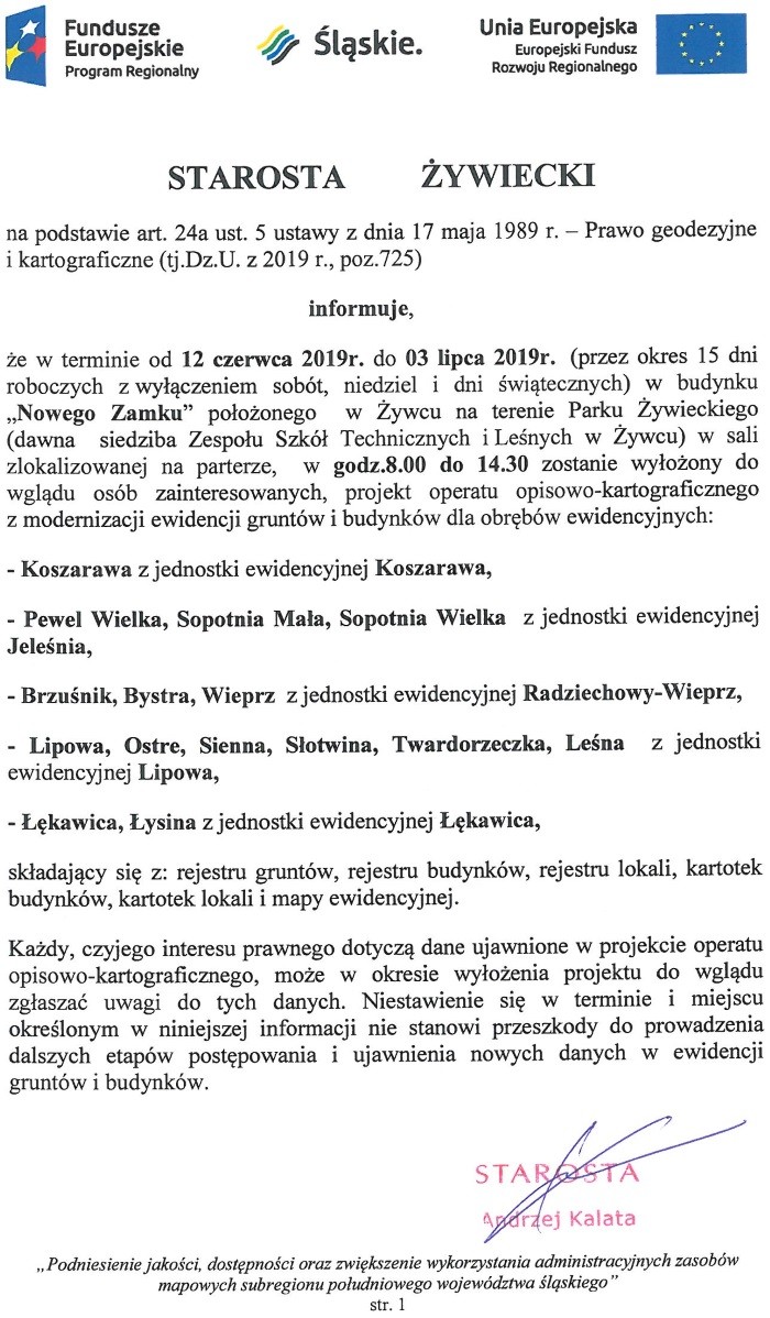 Informacja Starosty Żywieckiego Andrzeja Kalata