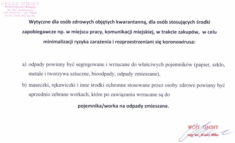 Informacja Wójta Gminy Radziechowy-Wieprz