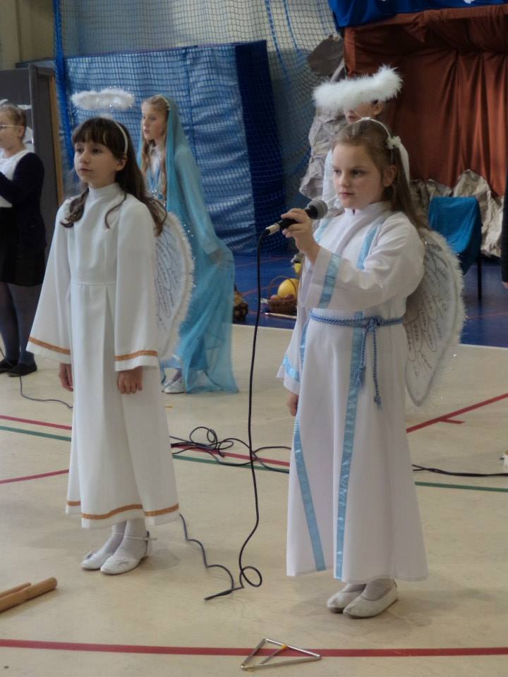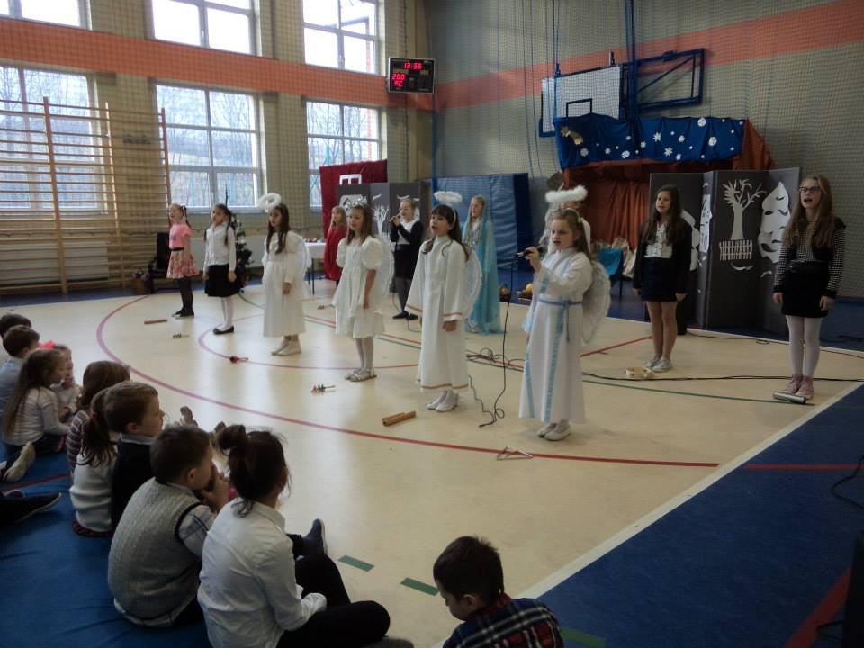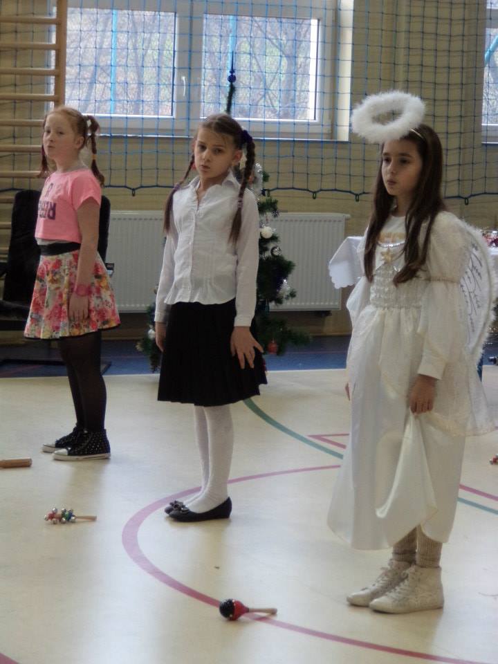 Wsparcia wolkalnego występującym udzielił szkolny zespoł "Wiolinki", dzięki któremu pod okiem Pani Doroty Ryżki na ten dzień przygotowany został równiez piękny koncert kolęd.