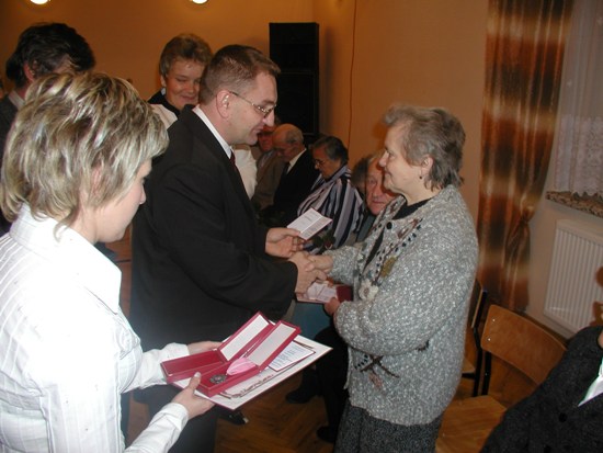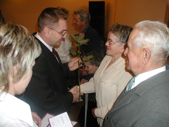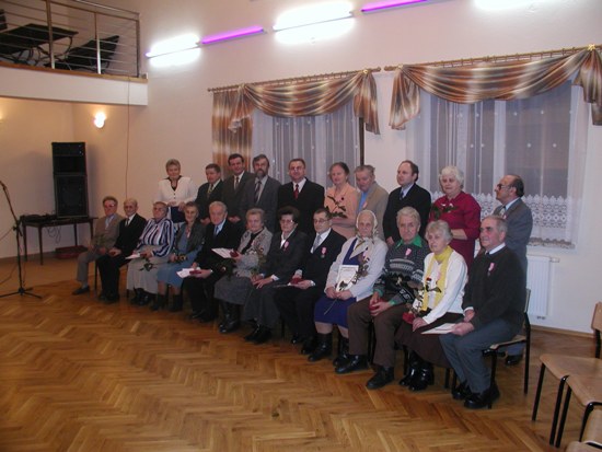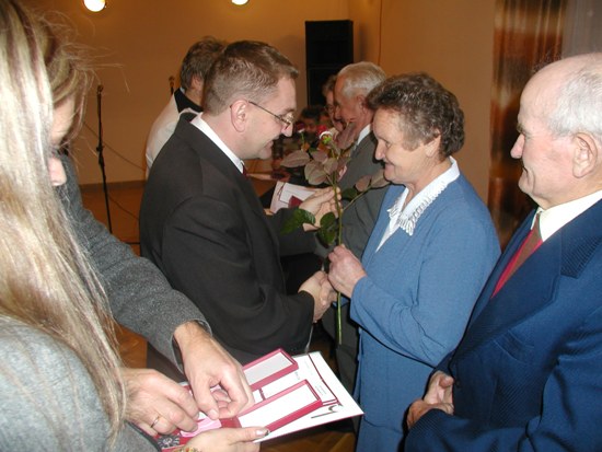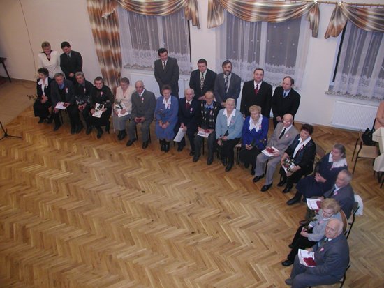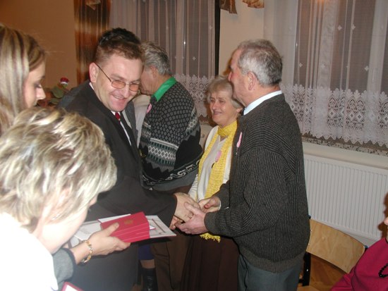 Wójt Gminy powitał Jubilatów składając im życzenia i wręczając Medale Prezydenta Rzeczpospolitej za długoletnie pożycie małżeńskie.