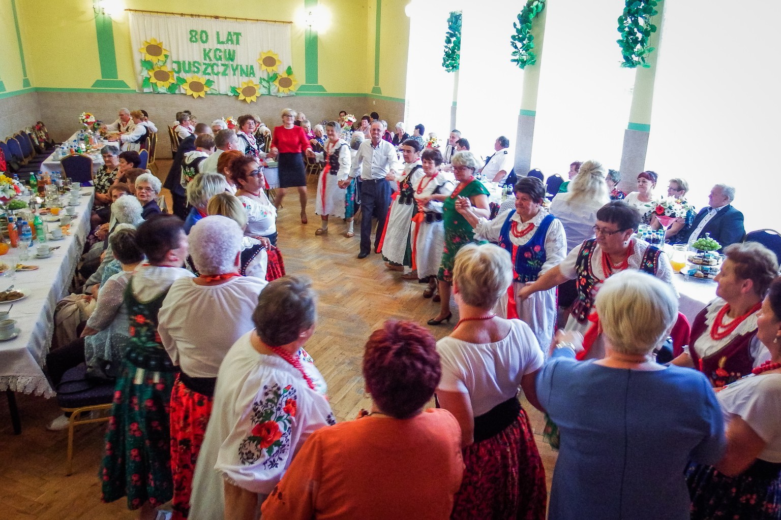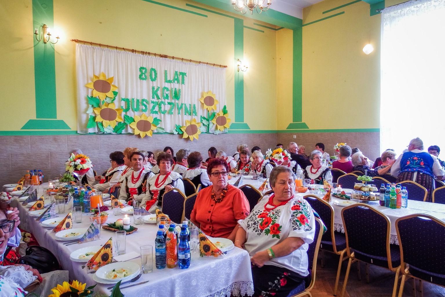 Całą uroczystość rozpoczęto Mszą Świętą, którą oprawiły czytaniami i modlitwą wiernych same jubilatki. Po Mszy w korowodzie wszyscy przeszli na sale Domu Ludowego, gdzie czytano piękne życzenia skierowane na ręce Pani Rozalii Polak, prezeski KGW Juszczyna. Nie obyło się bez występu Pań z KGW oraz pysznego obiadu.