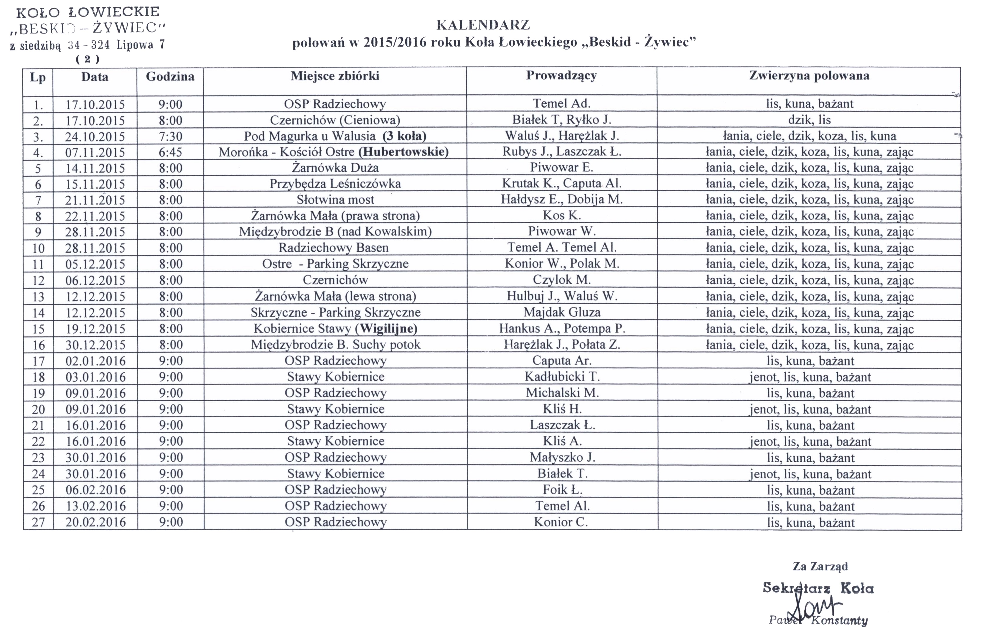 Kalendarz polowań w 2015/2016 roku Dodano: 29.10.2015 r. Kategoria: Informacje ogólne Koło Łowieckie "Beskid - Żywiec" - w obwodach 199 oraz 185.