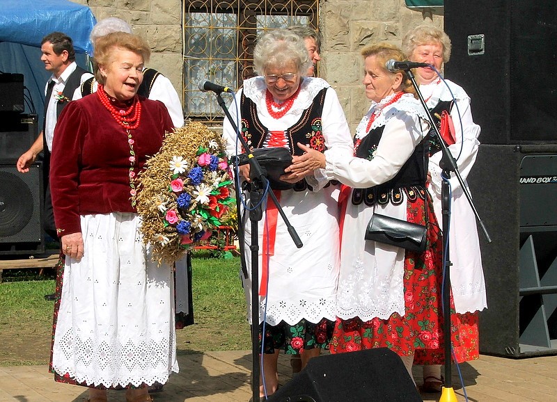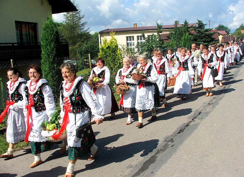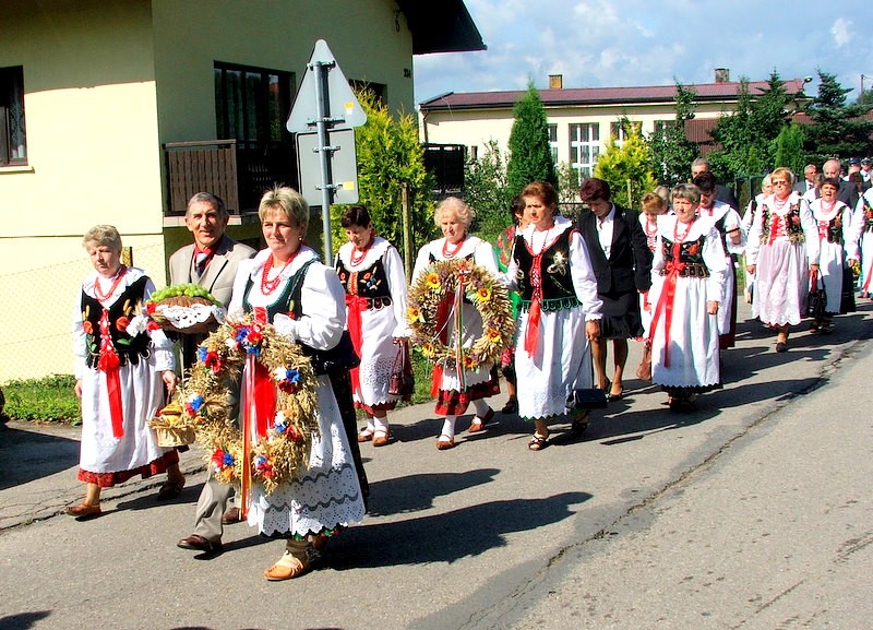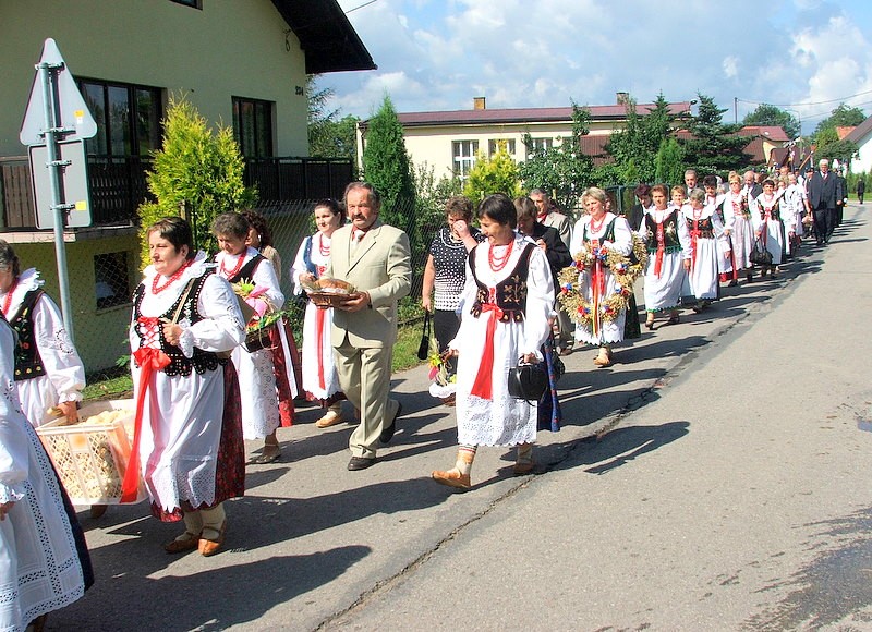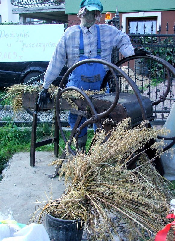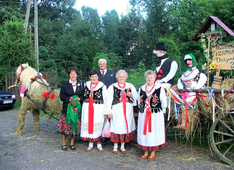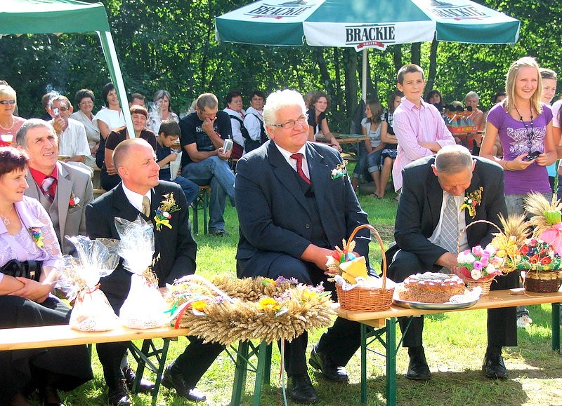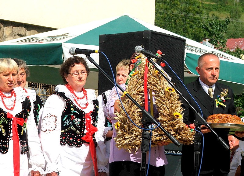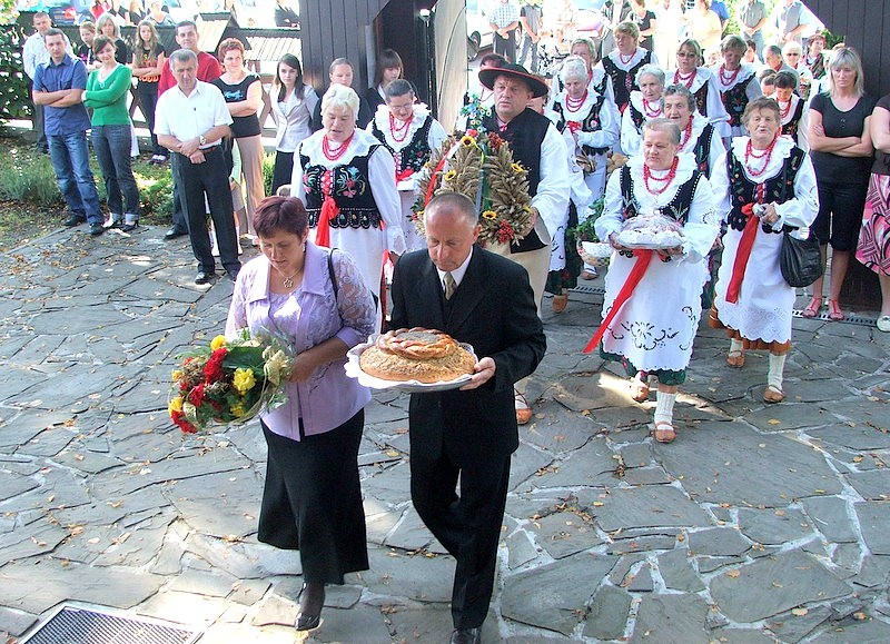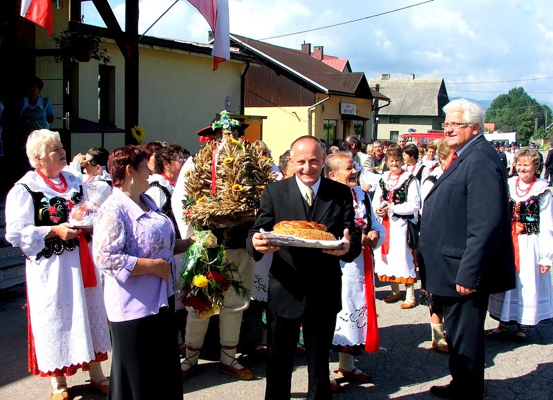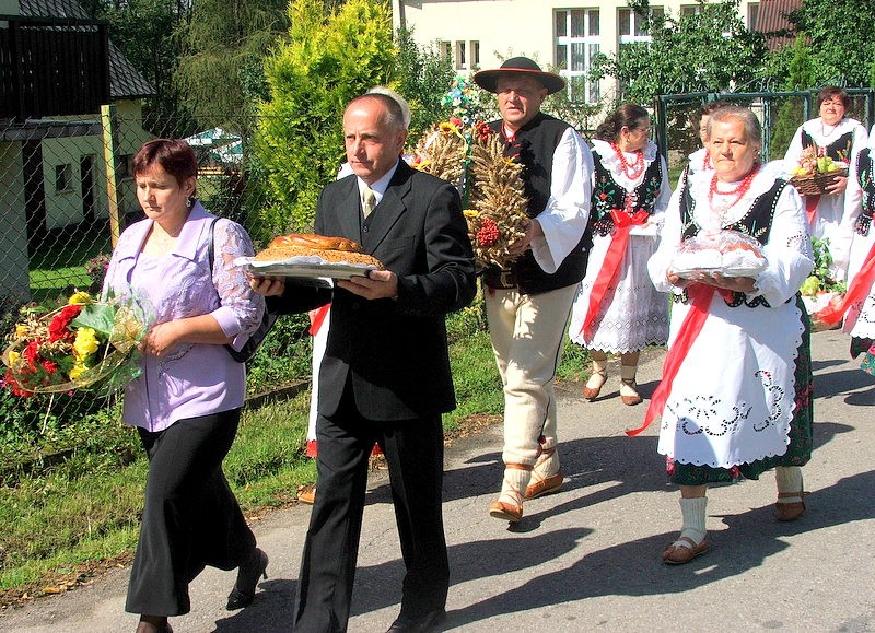 Niedziela 30 sierpnia 2009 r przyniosła nam na szczęście całkowitą zmianę pogody. Przy słonecznym dniu uformował się pod Domem Ludowym w Juszczynie korowód dożynkowy. Obok Kół Gospodyń Wiejskich i sołtysów z poszczególnych sołectw, stanęły poczty sztandarowe OSP i Górników. Był to bowiem dzień na który zaplanowaliśmy DOŻYNKI GMINNE. Przedstawiciele wszystkich sołectw udali się do Kościoła Nawiedzenia NMP w Juszczynie by złożyć dziękczynienie za tegoroczne plony. Obok ks. Kazimierza Buby, proboszcza Juszczyny stanęli proboszczowie Wieprza – Stanisław Jania i Radziechów – Ryszard Kubasiak. Na dziękczynne dary ołtarza przedstawiciele poszczególnych sołectw i Kół Gospodyń Wiejskich złożyli chleb, owoce, warzywa, grzyby, miód i wyroby mięsne. Trzeba dodać że całe sołectwo Juszczyna było wspaniale udekorowane a największy podziw budził słomiany koń zaprzężony do udekorowanego wozu witający na granicy sołectwa wszystkich przybywających na Dożynki. Po skończonej Eucharystii, korowodem dożynkowym wszyscy goście udali się do Domu Ludowego gdzie Panie z KGW z Juszczyny przygotowały pyszny obiad. Dalsza część uroczystości odbyła się na placu obok Przedszkola w Juszczynie. Tradycyjnie “ośpiewano” gości i wręczono na ręce Wójta Gminy Grzegorza Figury chleb i tradycyjne “kopki” z tegorocznych kłosów. Chlebem obdarowano wielu gości Dożynek i wszystkich mieszkańców Juszczyny. Gościem specjalnym Dożynek był Kabaret Góralski “TRUTEŃ” z Raby Wyżnej, który swym ciętym i góralskim humorem rozbawił wszystkich. Humoru nie szczędziła również juszczyńska HELA komentując z humorem zarówno zagadnienia ekologiczne jak i “wiejskie aktualności”. Dalsza część występów to prezentacje Szkoły Podstawowej, która obdzieliła gości prezentami i Gimnazjum w Juszczynie, które również przekazało symboliczny chleb na ręce Wójta Gminy.