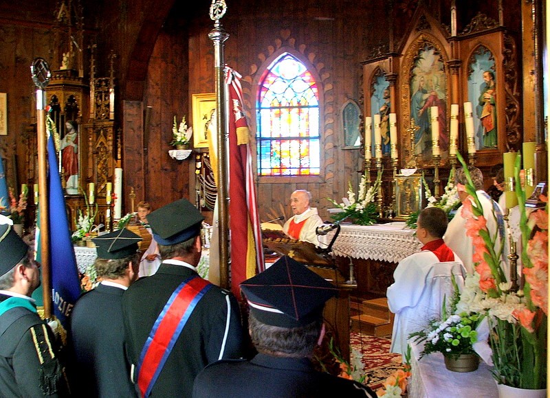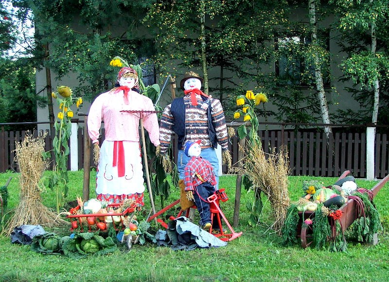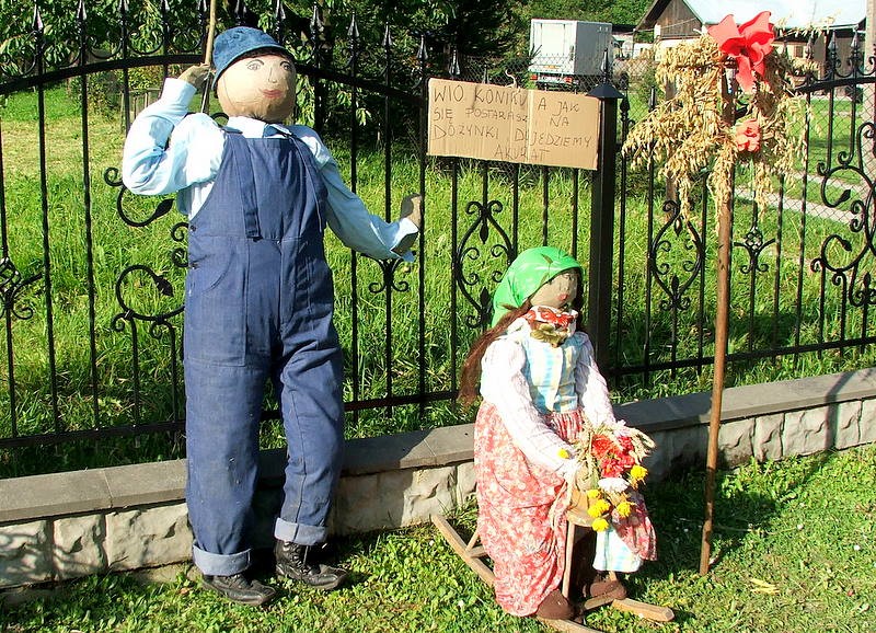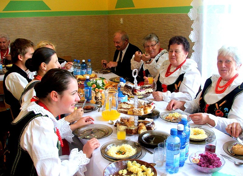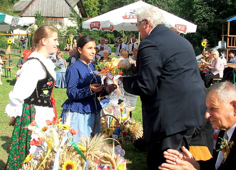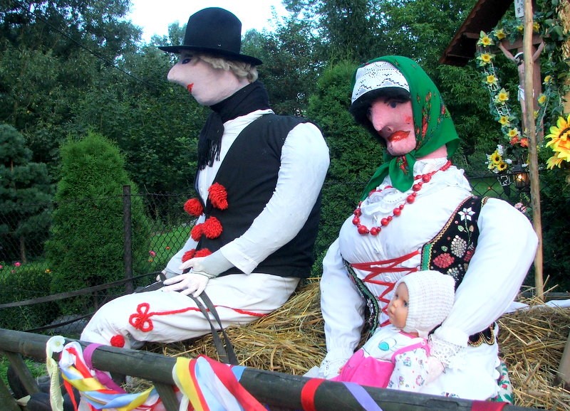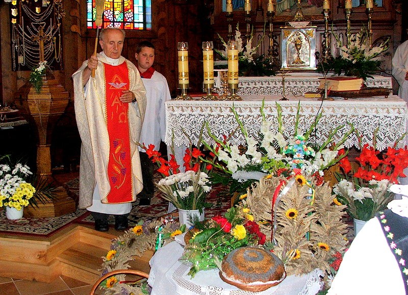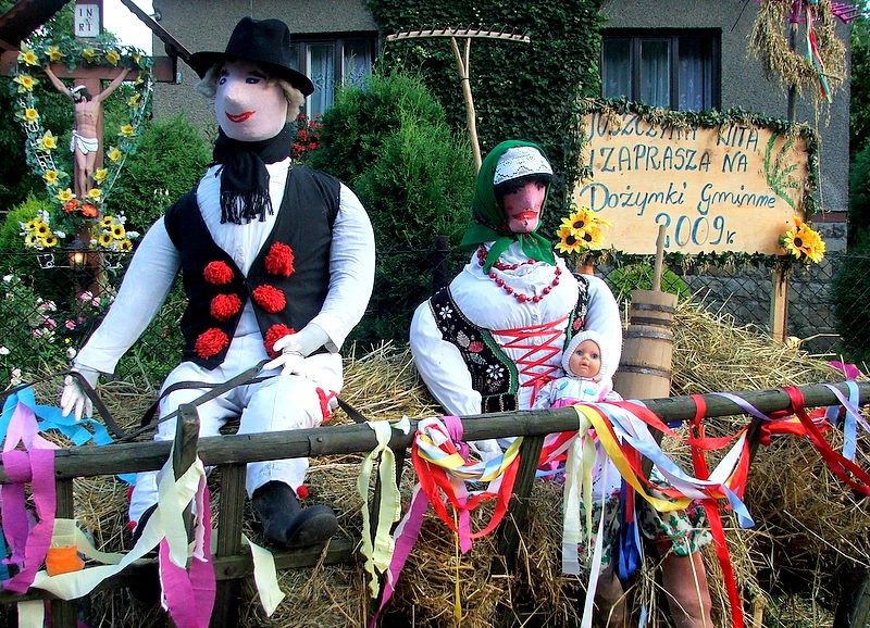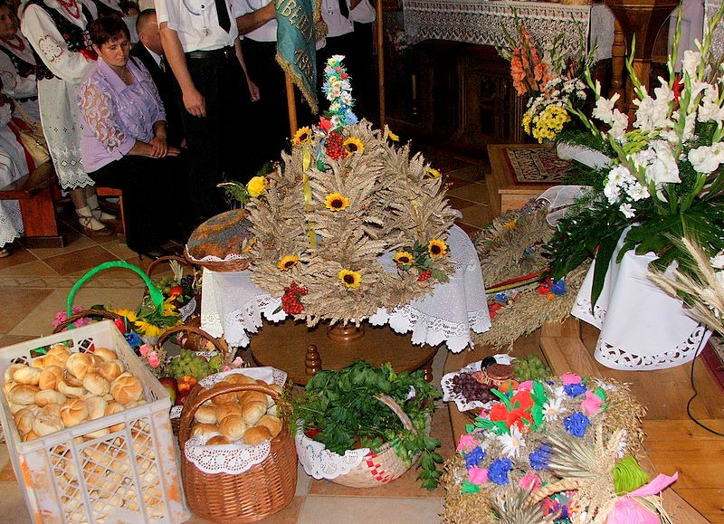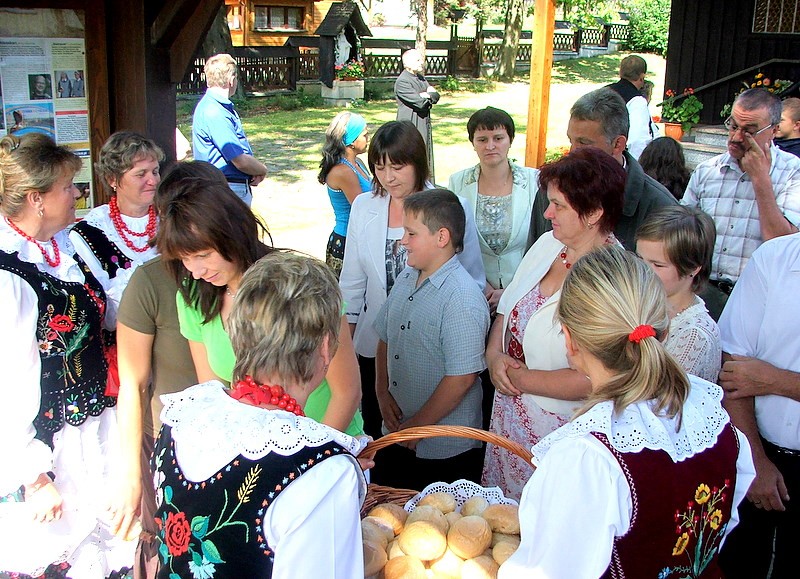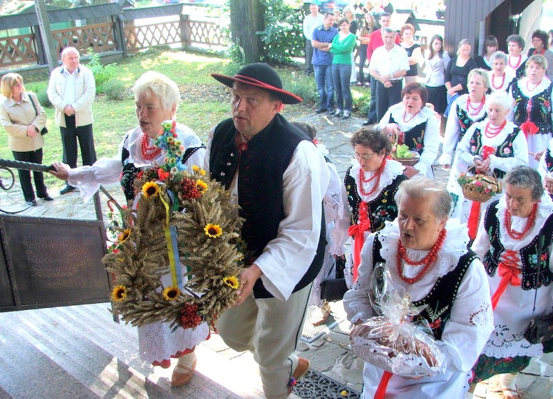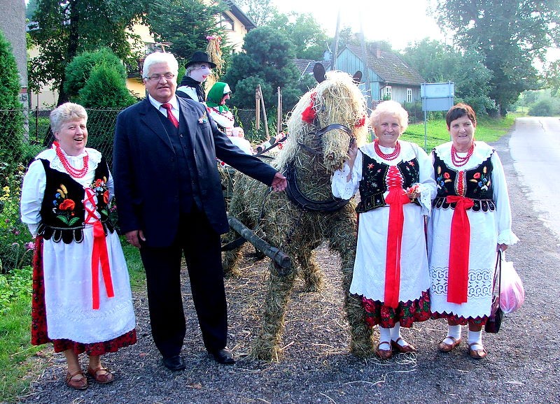 Niedziela 30 sierpnia 2009 r przyniosła nam na szczęście całkowitą zmianę pogody. Przy słonecznym dniu uformował się pod Domem Ludowym w Juszczynie korowód dożynkowy. Obok Kół Gospodyń Wiejskich i sołtysów z poszczególnych sołectw, stanęły poczty sztandarowe OSP i Górników. Był to bowiem dzień na który zaplanowaliśmy DOŻYNKI GMINNE. Przedstawiciele wszystkich sołectw udali się do Kościoła Nawiedzenia NMP w Juszczynie by złożyć dziękczynienie za tegoroczne plony. Obok ks. Kazimierza Buby, proboszcza Juszczyny stanęli proboszczowie Wieprza – Stanisław Jania i Radziechów – Ryszard Kubasiak. Na dziękczynne dary ołtarza przedstawiciele poszczególnych sołectw i Kół Gospodyń Wiejskich złożyli chleb, owoce, warzywa, grzyby, miód i wyroby mięsne. Trzeba dodać że całe sołectwo Juszczyna było wspaniale udekorowane a największy podziw budził słomiany koń zaprzężony do udekorowanego wozu witający na granicy sołectwa wszystkich przybywających na Dożynki. Po skończonej Eucharystii, korowodem dożynkowym wszyscy goście udali się do Domu Ludowego gdzie Panie z KGW z Juszczyny przygotowały pyszny obiad. Dalsza część uroczystości odbyła się na placu obok Przedszkola w Juszczynie. Tradycyjnie “ośpiewano” gości i wręczono na ręce Wójta Gminy Grzegorza Figury chleb i tradycyjne “kopki” z tegorocznych kłosów. Chlebem obdarowano wielu gości Dożynek i wszystkich mieszkańców Juszczyny. Gościem specjalnym Dożynek był Kabaret Góralski “TRUTEŃ” z Raby Wyżnej, który swym ciętym i góralskim humorem rozbawił wszystkich. Humoru nie szczędziła również juszczyńska HELA komentując z humorem zarówno zagadnienia ekologiczne jak i “wiejskie aktualności”. Dalsza część występów to prezentacje Szkoły Podstawowej, która obdzieliła gości prezentami i Gimnazjum w Juszczynie, które również przekazało symboliczny chleb na ręce Wójta Gminy.