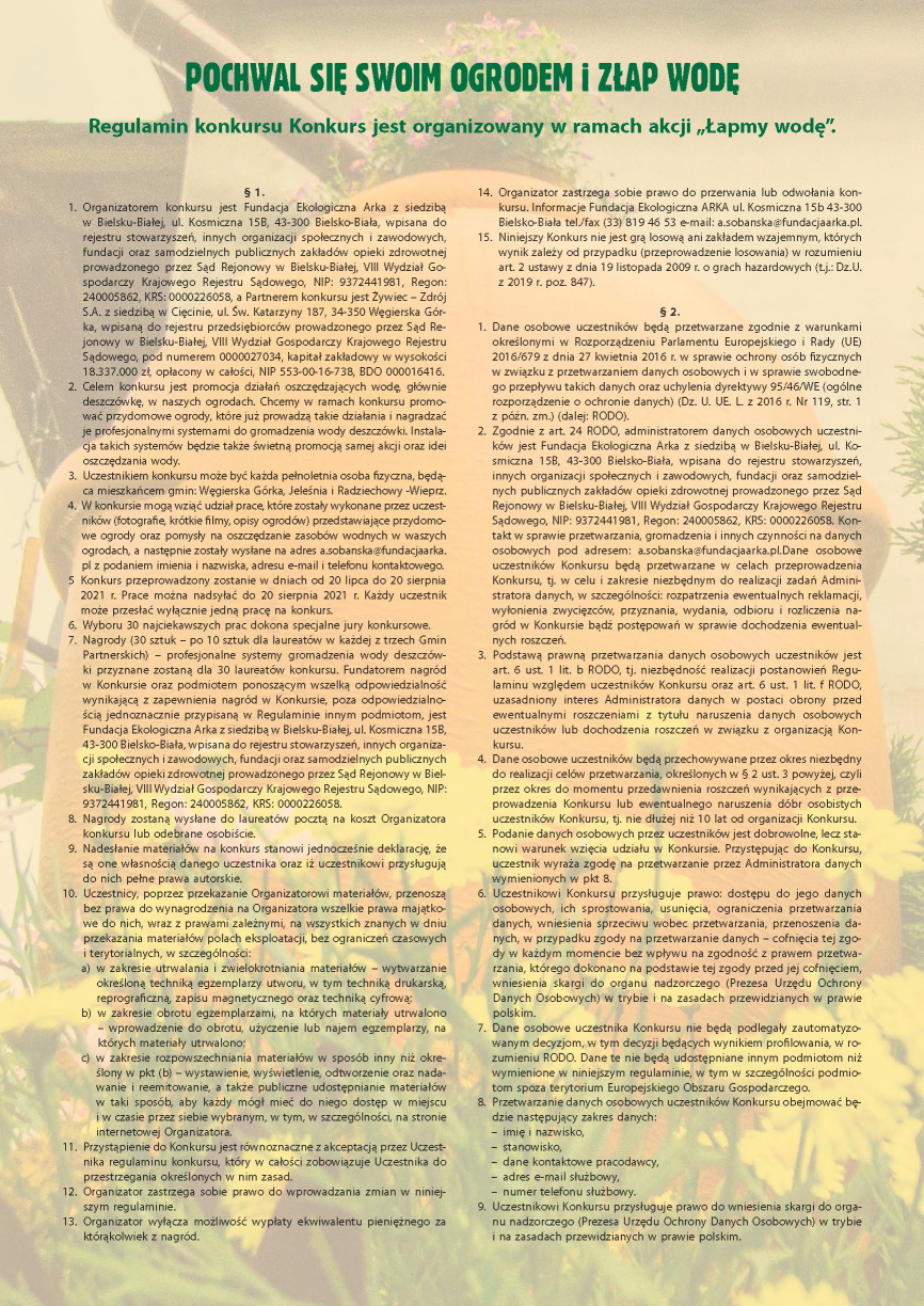 KONKURS: POCHWAL SIĘ SWOIM OGRODEM i ZŁAP WODĘ Dodano: 05.07.2021 r. Kategoria: Informacje ogólne Nakręć krótki film, zrób zdjęcia, opisy ogrodów! I złap cenne nagrody!