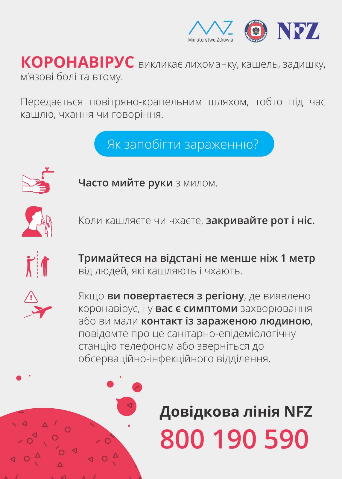 Narodowy Fundusz Zdrowia Śląskiego Oddziału Wojewódzkiego w Katowicach informuje w spocie informacyjnym o podstawowych środkach ochronnych i profilaktyce przeciwko koronawirusowi wywołującemu chorobę COVID-19
