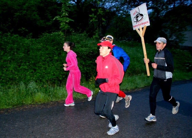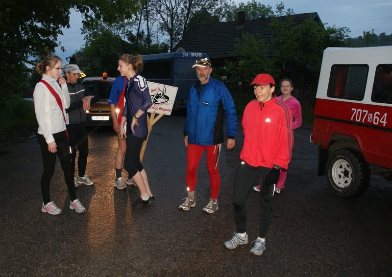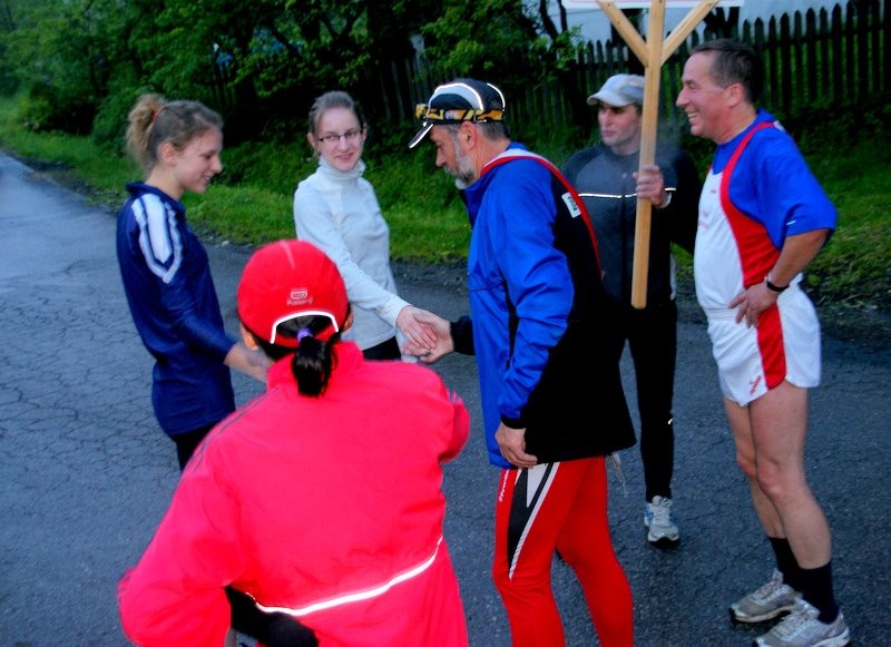 Dorośli biegacze mieli z tym troszkę problemów natomiast 12 letnie bliźniaczki i o trzy lata starsza siostra, córki koordynatora wstały bez problemu, aby kontynuować rozpoczęty bieg już po raz kolejny. Tym razem na naszej zmianie było nas 8 osób, a oto dzielni biegacze Bogusia Kupczak z mężem Tadeuszem, Jan Ficon, oraz rodzina Dudków mama Irena z córkami Weroniką, Ewą i Natalką, oraz tata Edward koordynator gminny. Jak co roku trasę zabezpieczali nam strażacy OSP Juszczyna, a dokumentacje fotograficza utrwalał dyr. GCK,P,T Marek Jurasz. Trzeba przyznać że pogoda mimo dużej mgły sprzyjała nam podczas biegu, a biegacze dobrze radzili sobie z trudną górską trasą, która wiodła z przysiółka Figurzy do przełęczy Polaki w Juszczynie. Szarfę Kwietnego Biegu przekazał nam koordynator gminy Milówka p. A. Maciejewski, który z braku biegaczy w gminie Węgierska – Górka musiał zabezpieczyć przebieg przez tą gminę. Nasza sztafeta narzuciła ostre tępo i na zmianę ze sztafetą gminy Jeleśnia przybiegła z 10 minutowym wyprzedzeniem. W imieniu swoim i organizatorów Kwietnego Biegu 2010 pragnę podziękować uczestnikom, oraz OSP Juszczyna, policji, służbą zabezpieczającym bieg i osobą towarzyszącym i zaprosić wszystkich chętnych do udziału w XIX Międzynarodowym EKO Biegu Szlakiem Dudka XV Memoriału Ewy Dudek rozgrywanego w ramach Kwietnego Biegu w Radziechowach k/ Żywiec w dniu 29 maja 2010 roku.