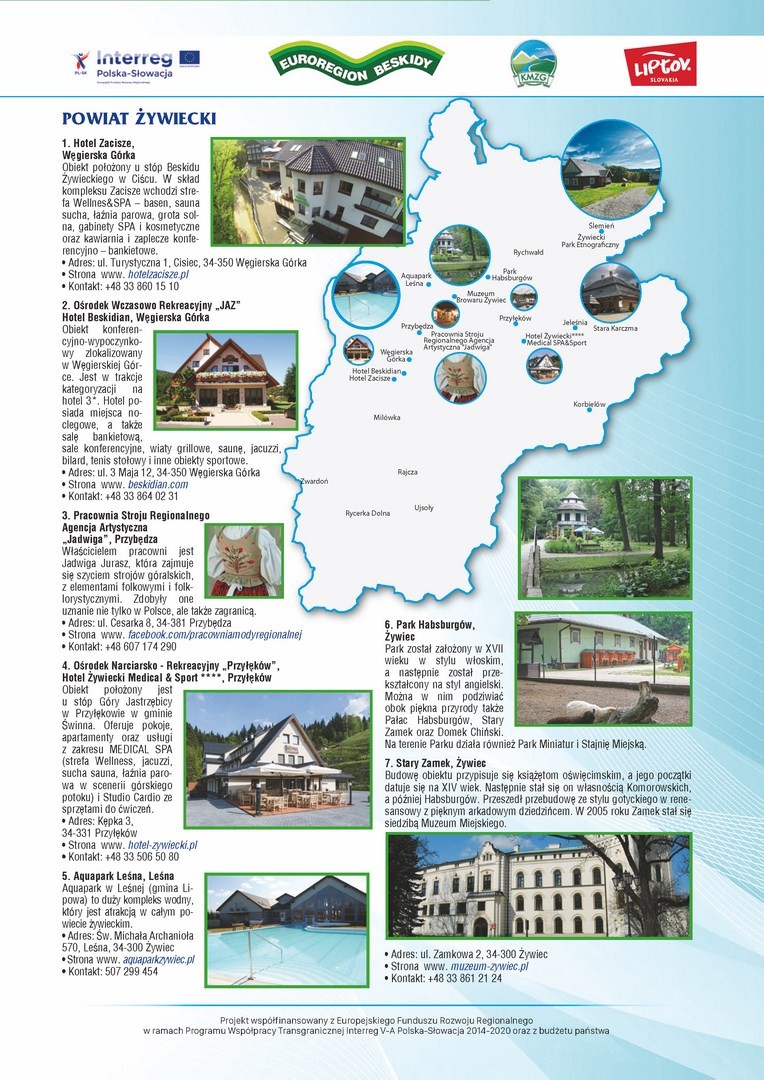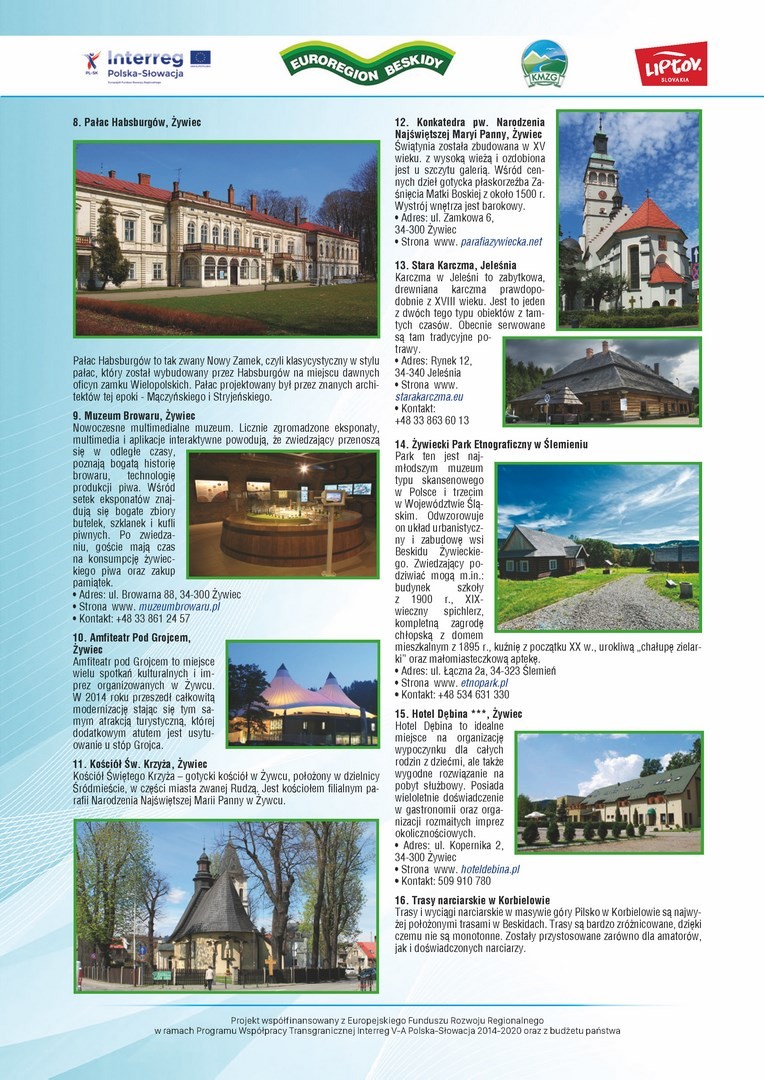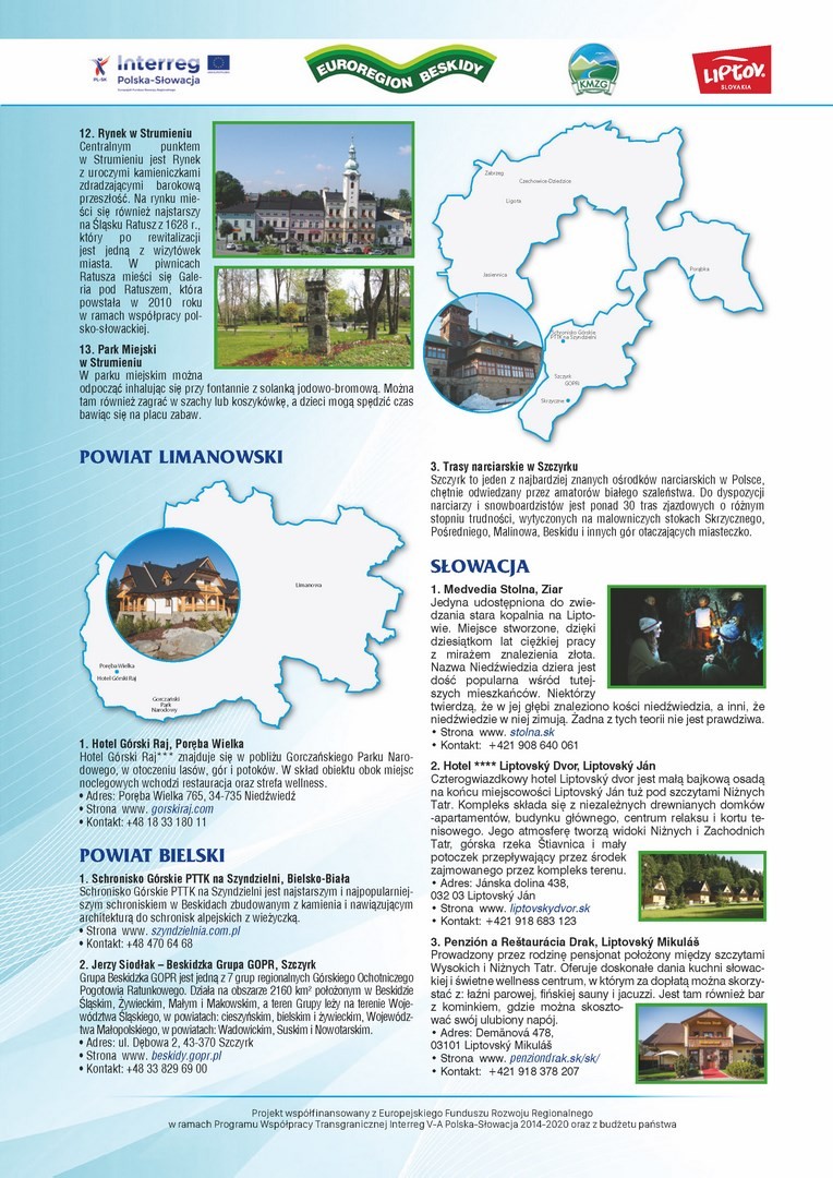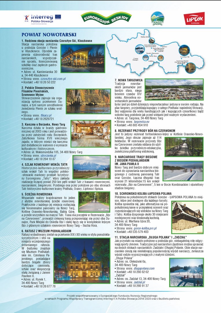 W związku z realizacją przez Stowarzyszenie Koalicja Marek Ziem Górskich z siedzibą w Żywcu, wspólnie z Partnerem słowackim – Region Liptov z siedzibą w Liptovskim Mikulaszu, mikroprojektu pn. „Polsko – słowacka akcja promująca walory dziedzictwa przyrodniczego i kulturowego ziem górskich” w załączeniu przesyłamy wydaną w ramach przedmiotowego projektu MAPĘ ATRAKCJI KULTURALNYCH I PRZYRODNICZYCH POGRANICZA POLSKO - SŁOWACKIEGO.