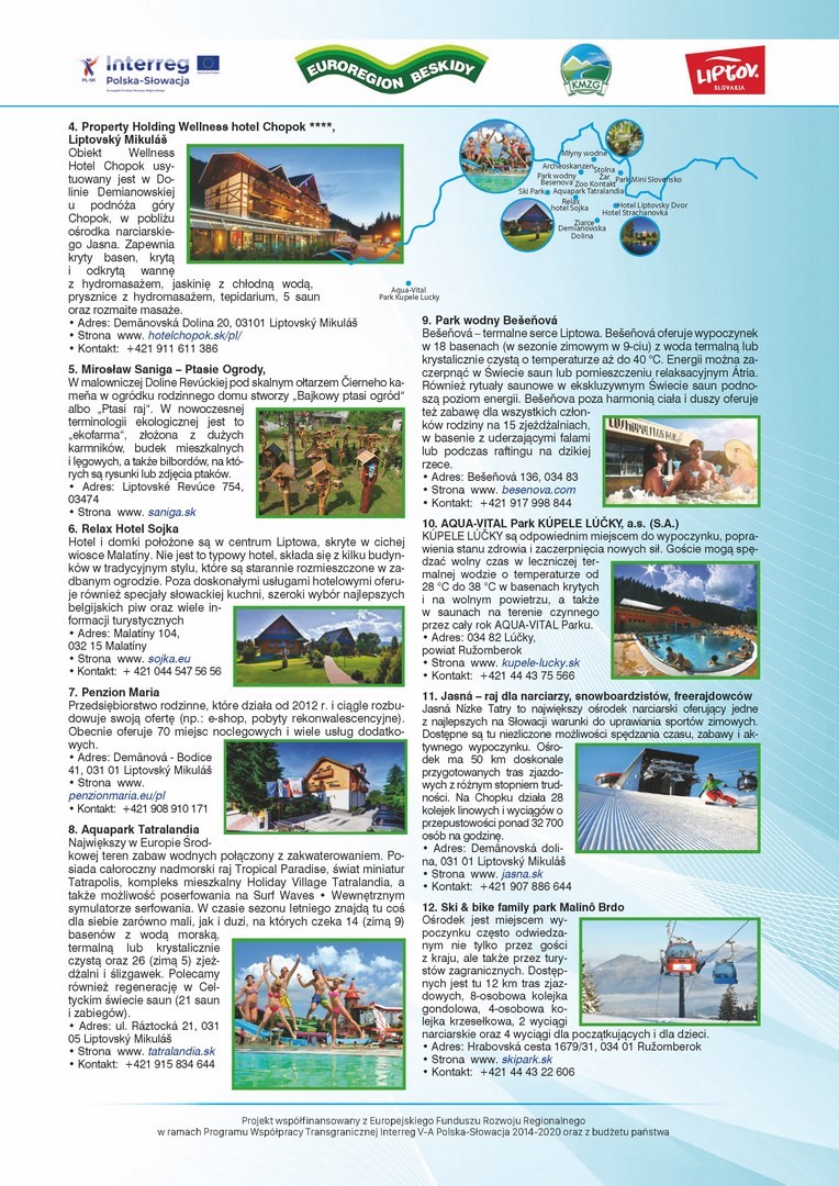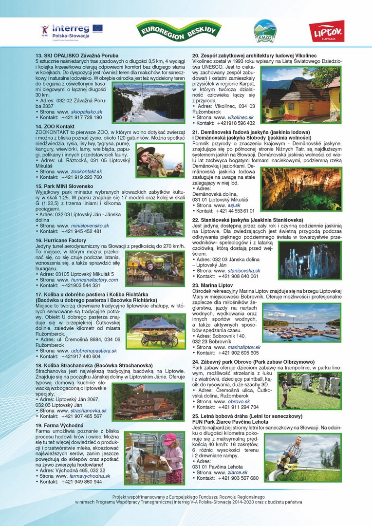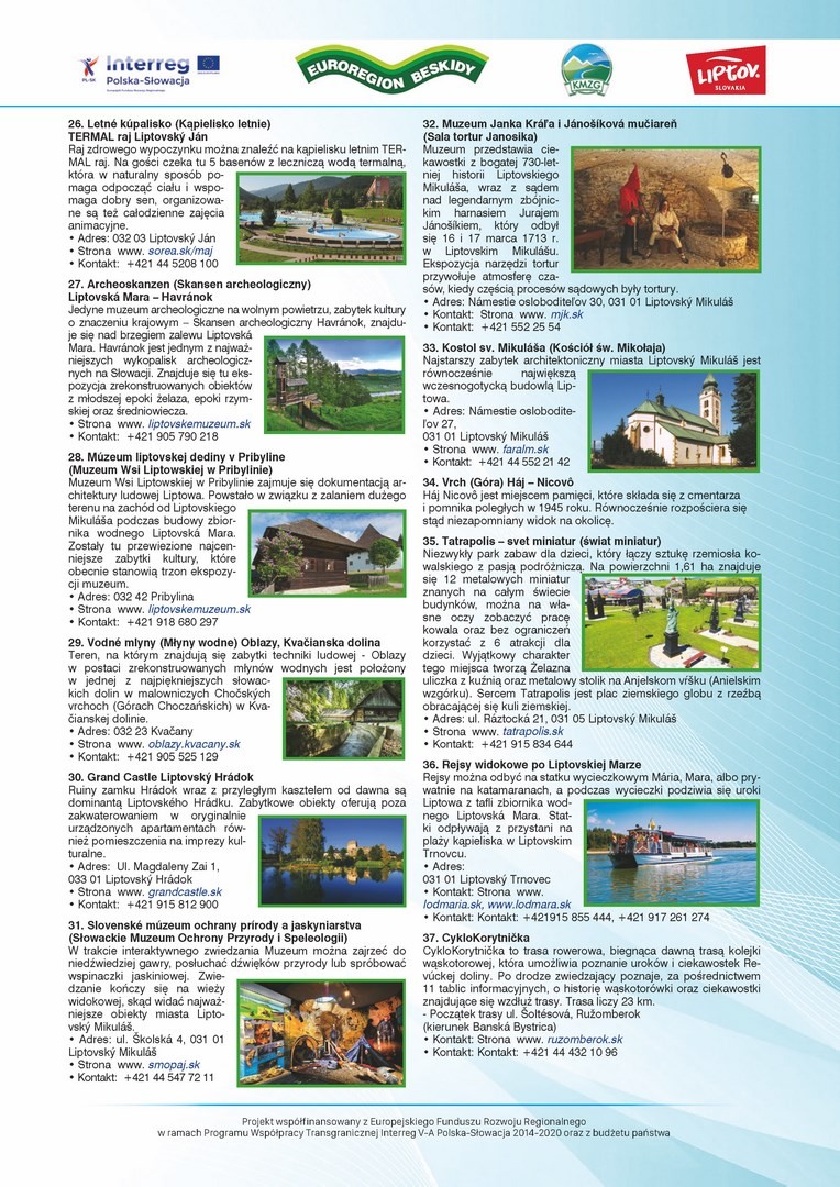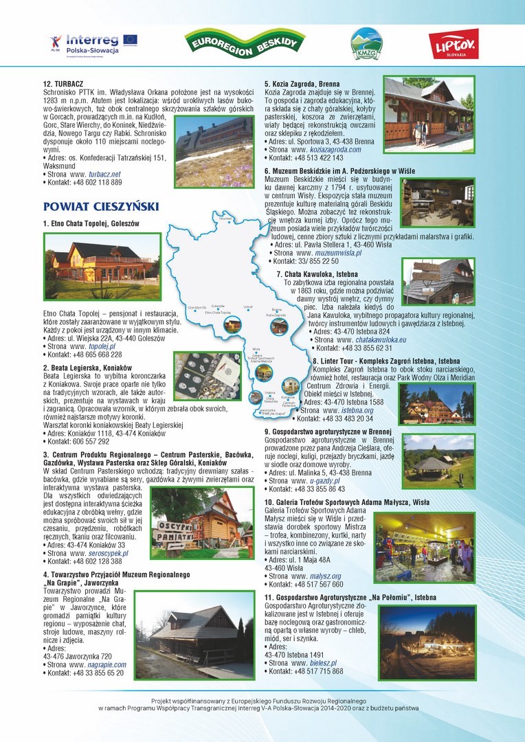 W związku z realizacją przez Stowarzyszenie Koalicja Marek Ziem Górskich z siedzibą w Żywcu, wspólnie z Partnerem słowackim – Region Liptov z siedzibą w Liptovskim Mikulaszu, mikroprojektu pn. „Polsko – słowacka akcja promująca walory dziedzictwa przyrodniczego i kulturowego ziem górskich” w załączeniu przesyłamy wydaną w ramach przedmiotowego projektu MAPĘ ATRAKCJI KULTURALNYCH I PRZYRODNICZYCH POGRANICZA POLSKO - SŁOWACKIEGO.