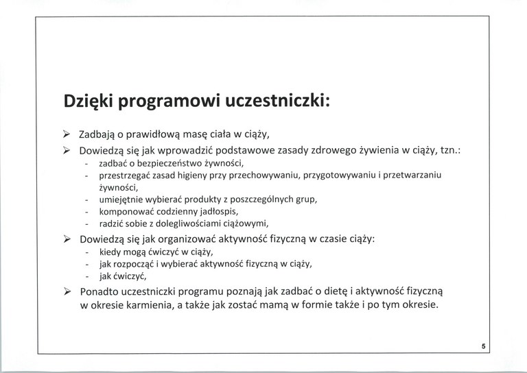 ■ Ponadto uczestniczki programu poznają jak zadbać o dietę i aktywność fizyczną w okresie karmienia, a także jak zostać mamą w formie także i po tym okresie.