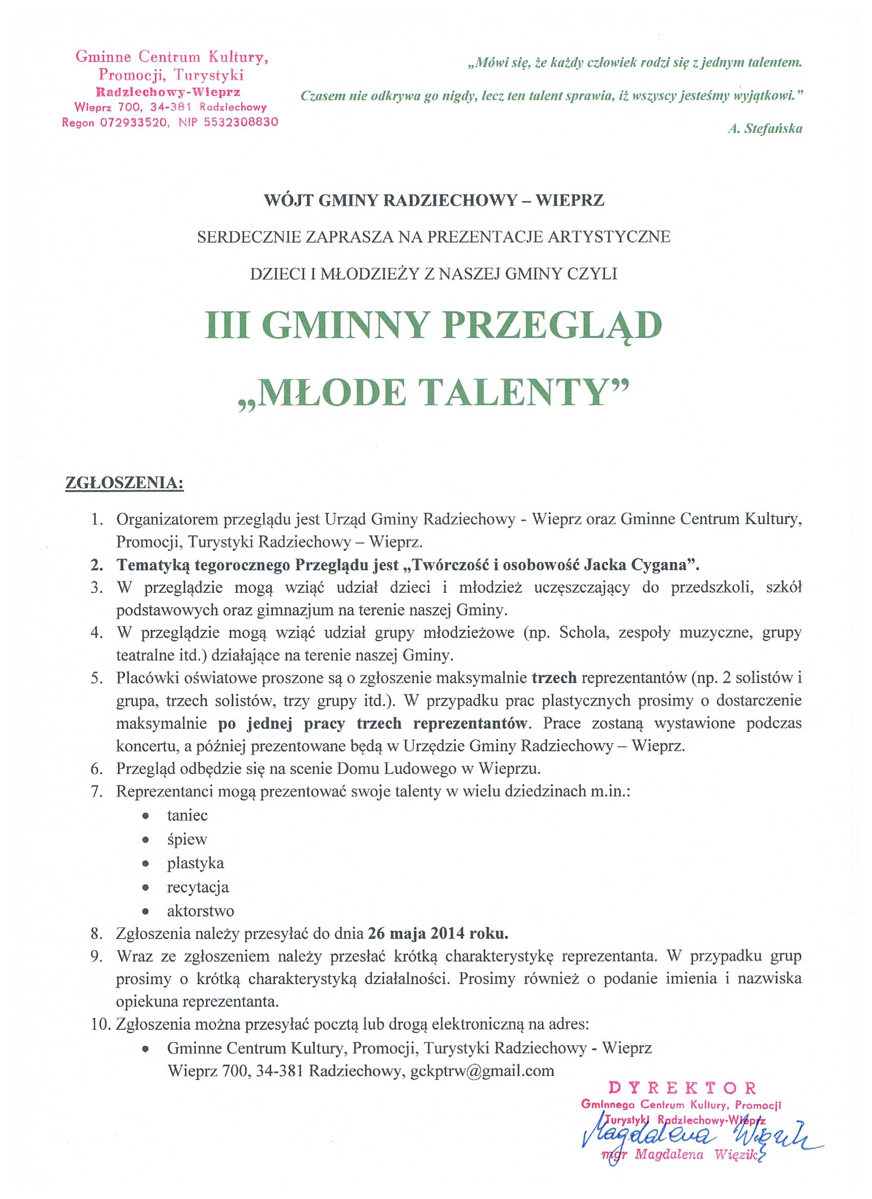 DO III GMINNEGO PRZEGLĄDU MŁODE TALENTY,