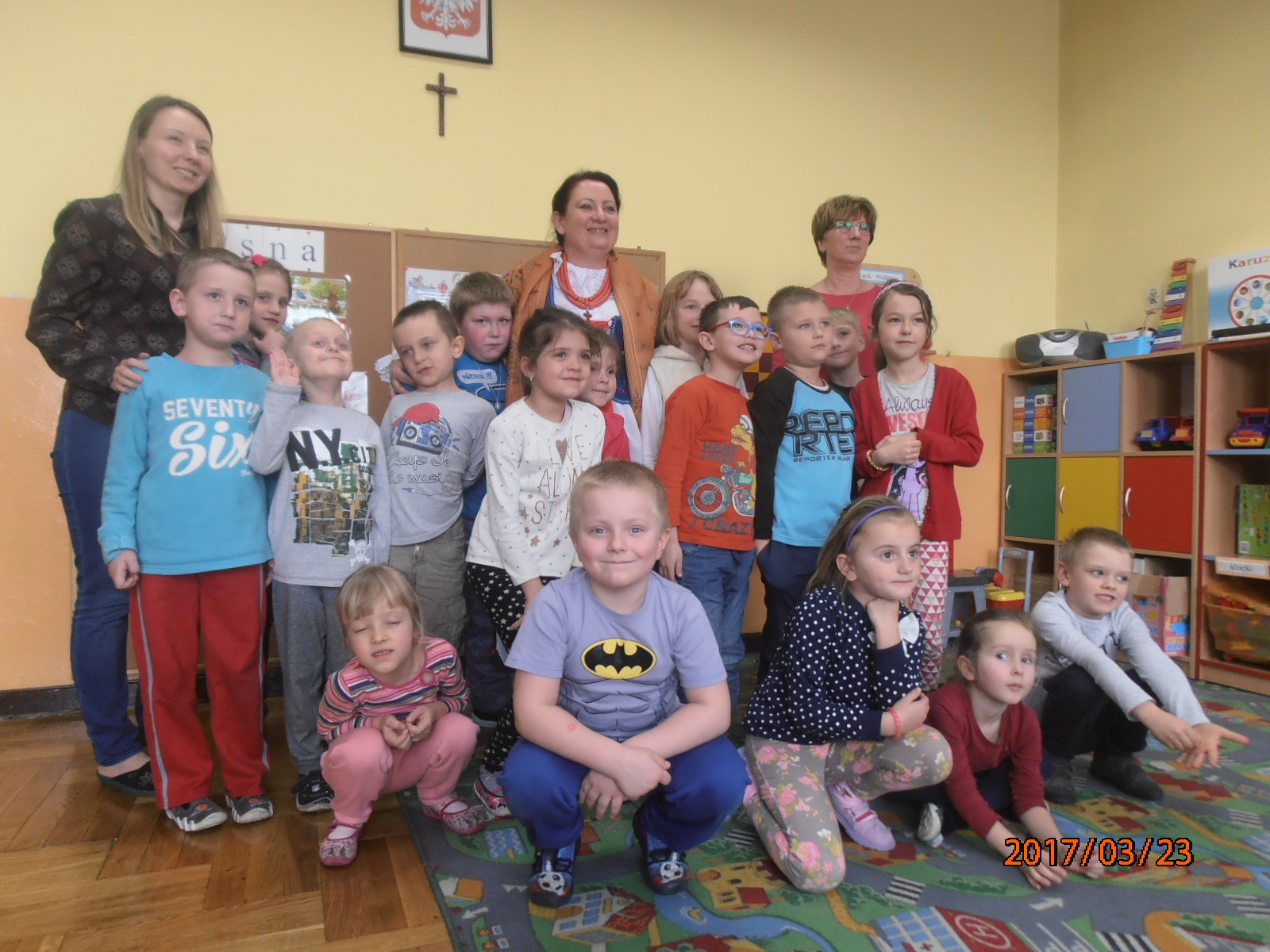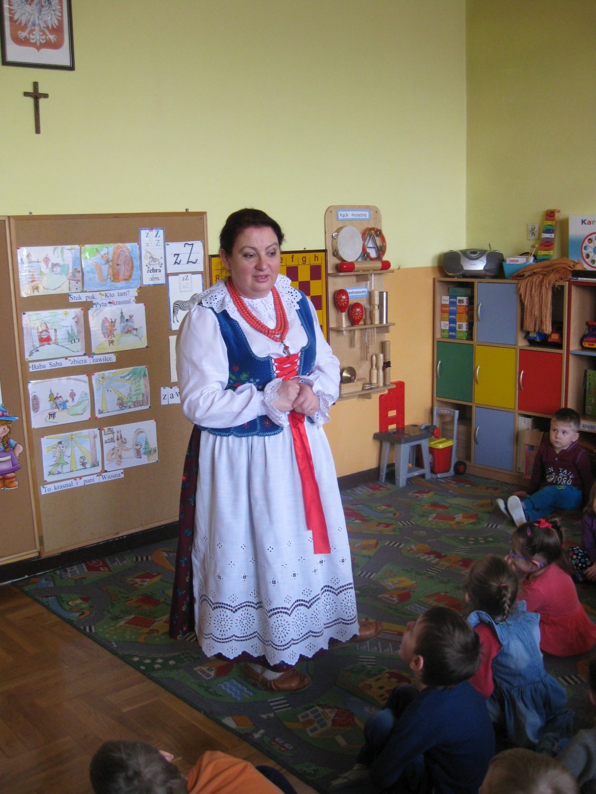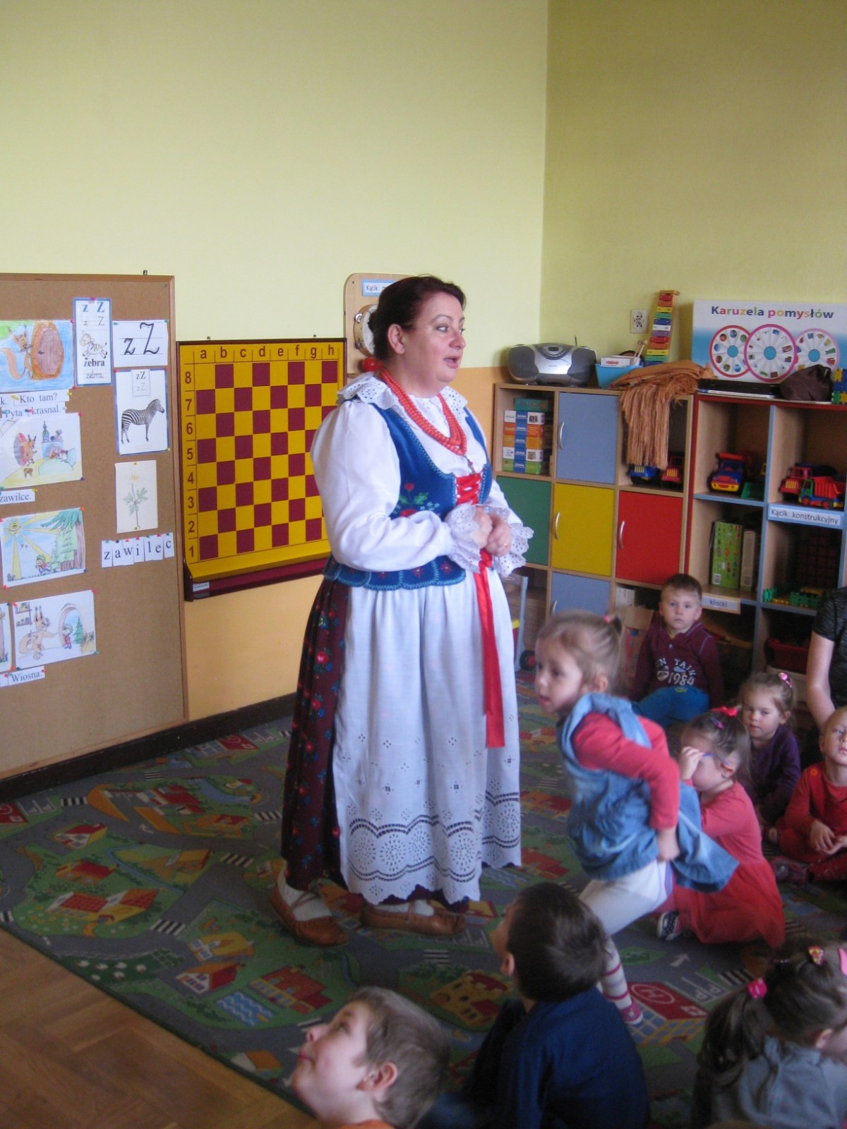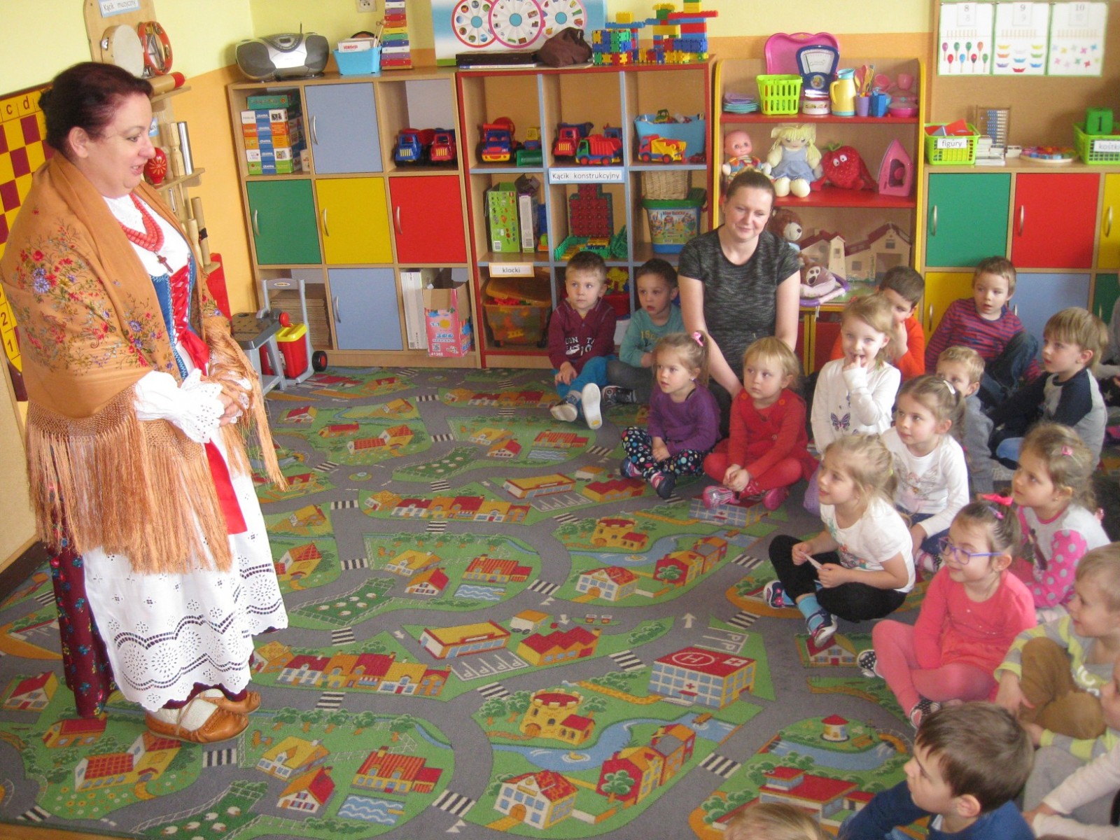 Tym razem przedmiotem badań stało się dziedzictwo kulturowe i tradycje górali żywieckich. Odpowiedzi na nurtujące dzieci pytania udzieliła Pani Jadwiga Jurasz- kierownik artystyczny Stowarzyszenia Społeczno- Kulturalnego „Grojcowianie”. Spotkanie ze znaną w całym kraju i poza jego granicami regionalistką i konferansjerką, do którego doszło w dniu 23 marca 2017r. na długo pozostanie w pamięci przedszkolaków i ich wychowawczyń. Były góralskie pieśni, piękna gwara i wierne tradycji góralskiej stroje. Dzieci z zapartym tchem słuchały opowieści o wypasaniu owiec, redyku w Przybędzy, festiwalach poświęconych pielęgnowaniu góralszczyzny…