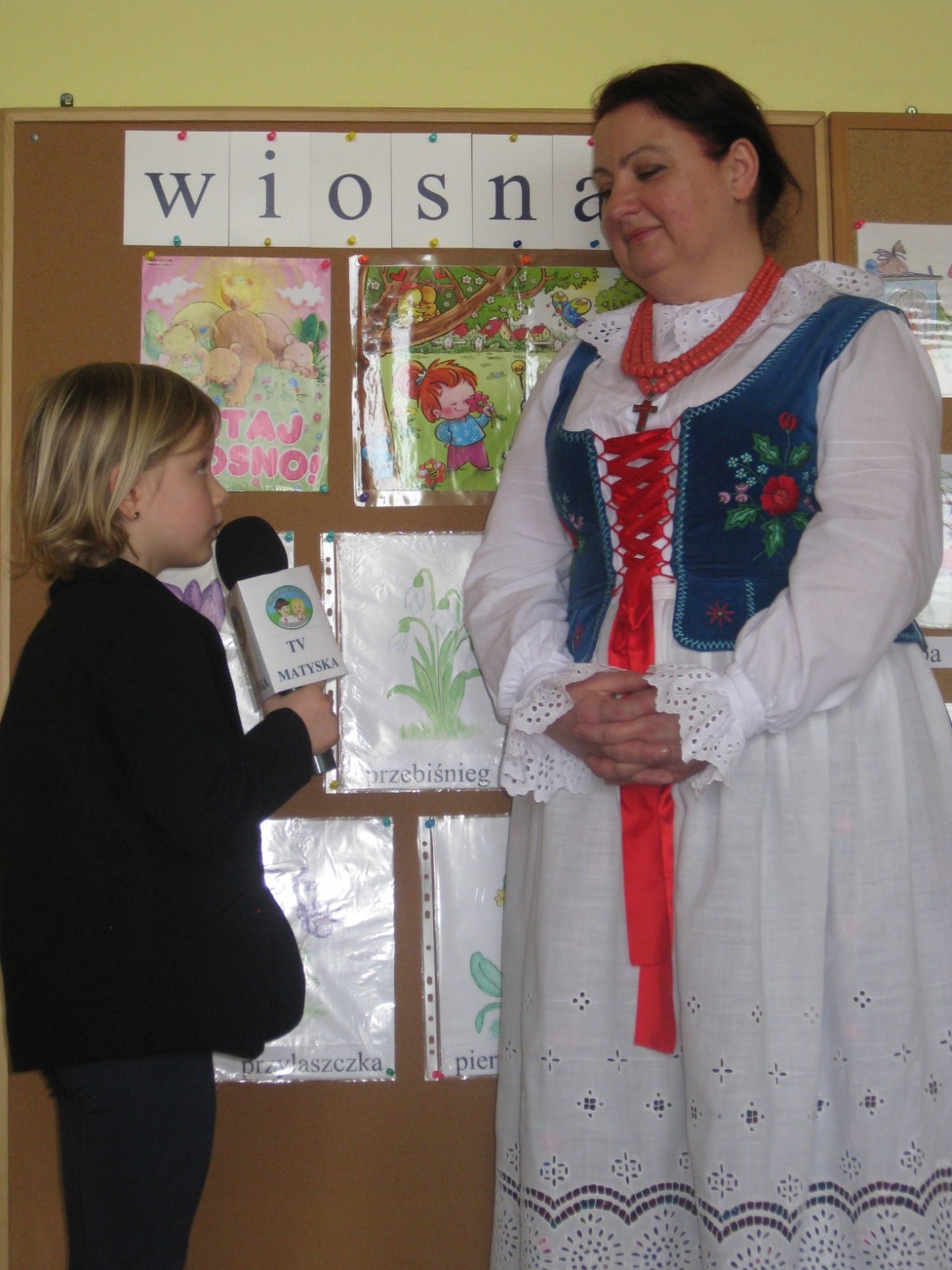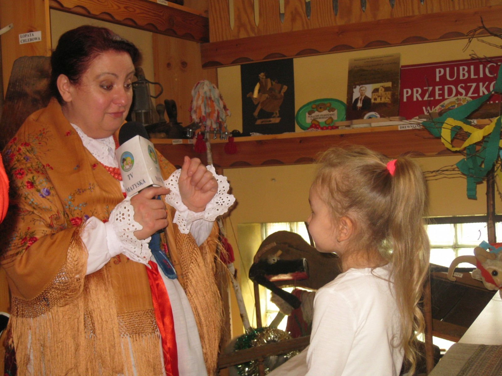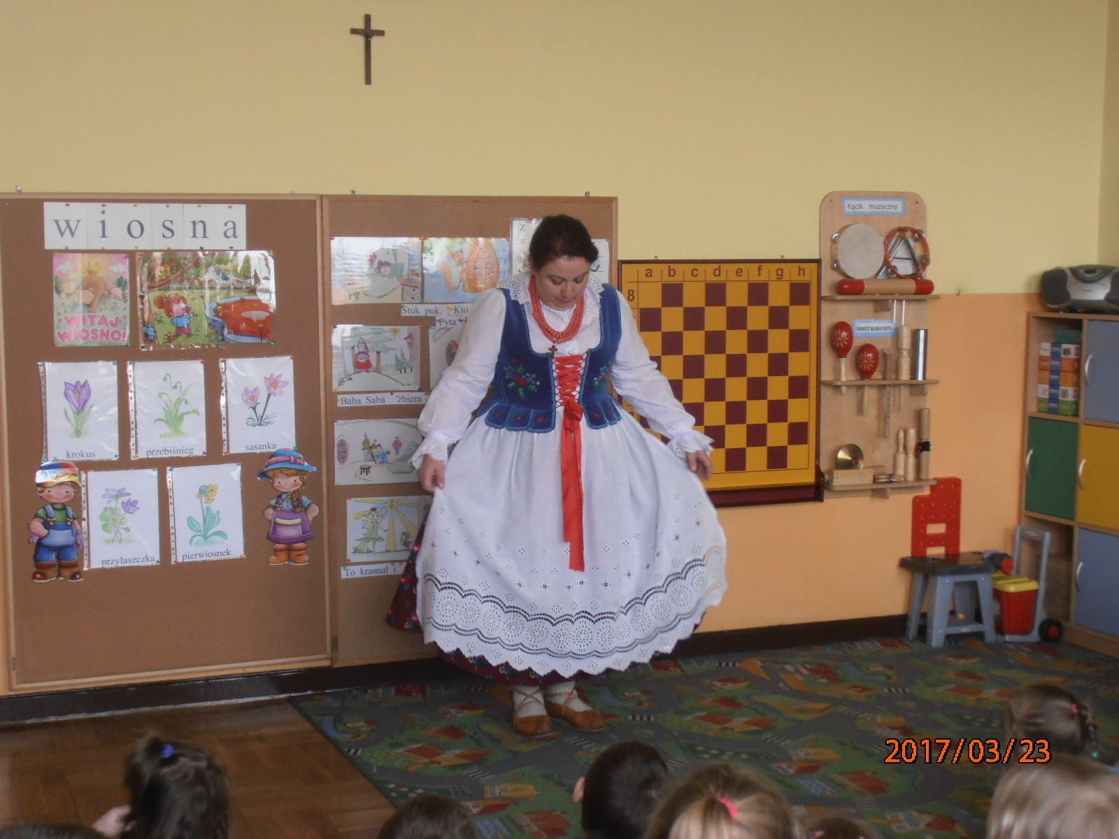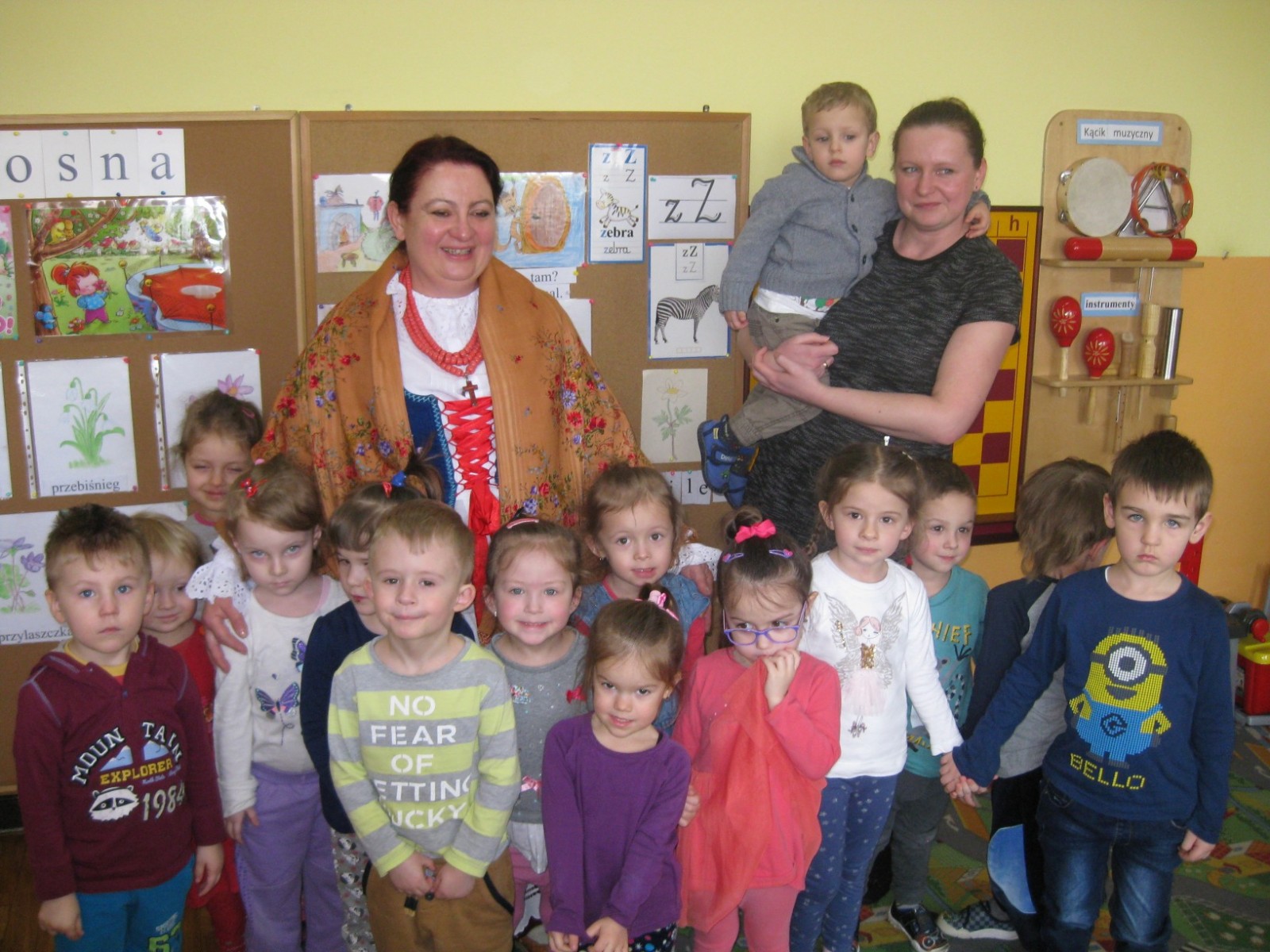 Tym razem przedmiotem badań stało się dziedzictwo kulturowe i tradycje górali żywieckich. Odpowiedzi na nurtujące dzieci pytania udzieliła Pani Jadwiga Jurasz- kierownik artystyczny Stowarzyszenia Społeczno- Kulturalnego „Grojcowianie”. Spotkanie ze znaną w całym kraju i poza jego granicami regionalistką i konferansjerką, do którego doszło w dniu 23 marca 2017r. na długo pozostanie w pamięci przedszkolaków i ich wychowawczyń. Były góralskie pieśni, piękna gwara i wierne tradycji góralskiej stroje. Dzieci z zapartym tchem słuchały opowieści o wypasaniu owiec, redyku w Przybędzy, festiwalach poświęconych pielęgnowaniu góralszczyzny…