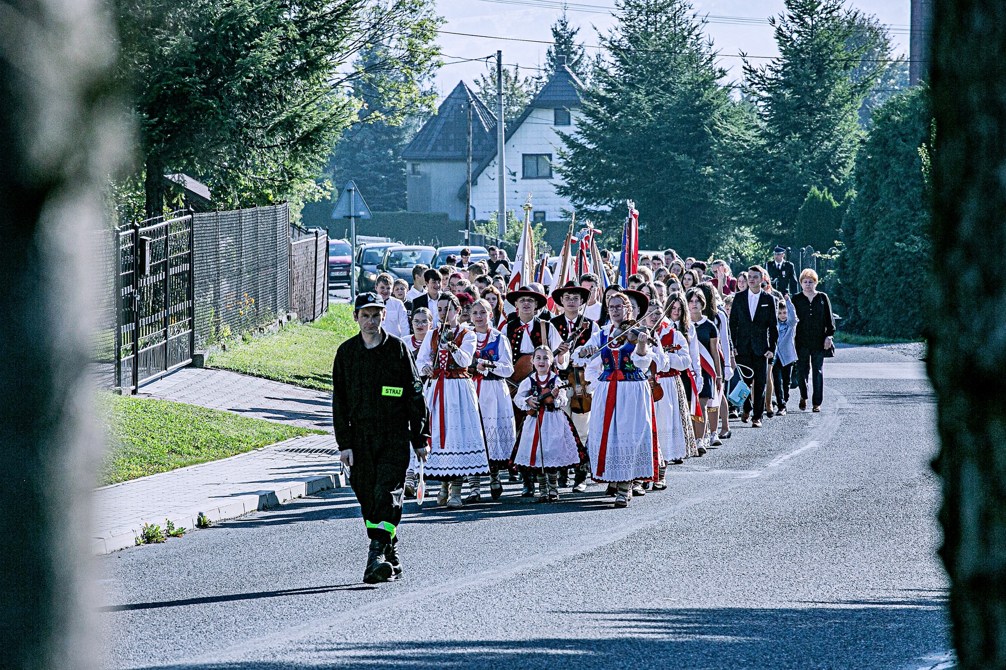 Po zakończeniu Mszy Świętej uczestnicy uroczystości przemaszerowali z kościoła do nowopowstałej sali gimnastycznej. To symboliczne przejście było prowadzone przez Kapelę Zespołu Regionalnego Grojcowianie, Ochotniczą Straż Pożarną z Przybędzy, Koło Gospodyń Wiejskich oraz Radę Rodziców wraz z Radą Pedagogiczną.